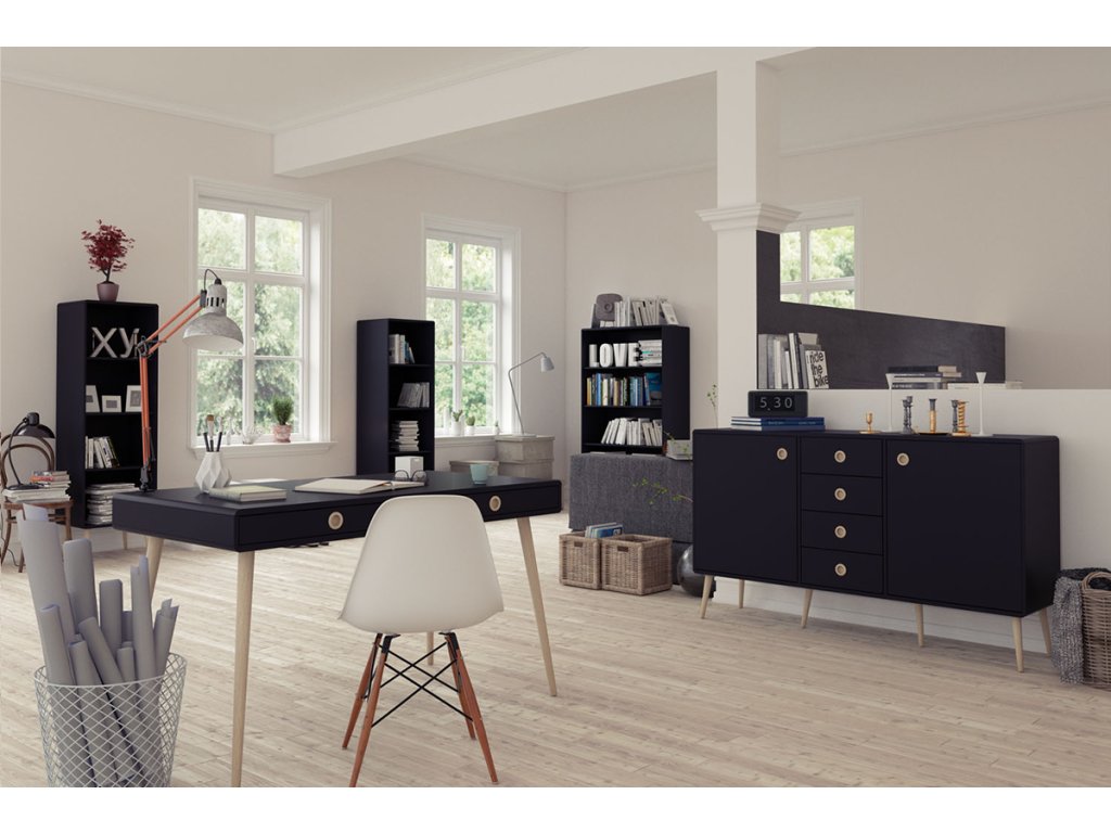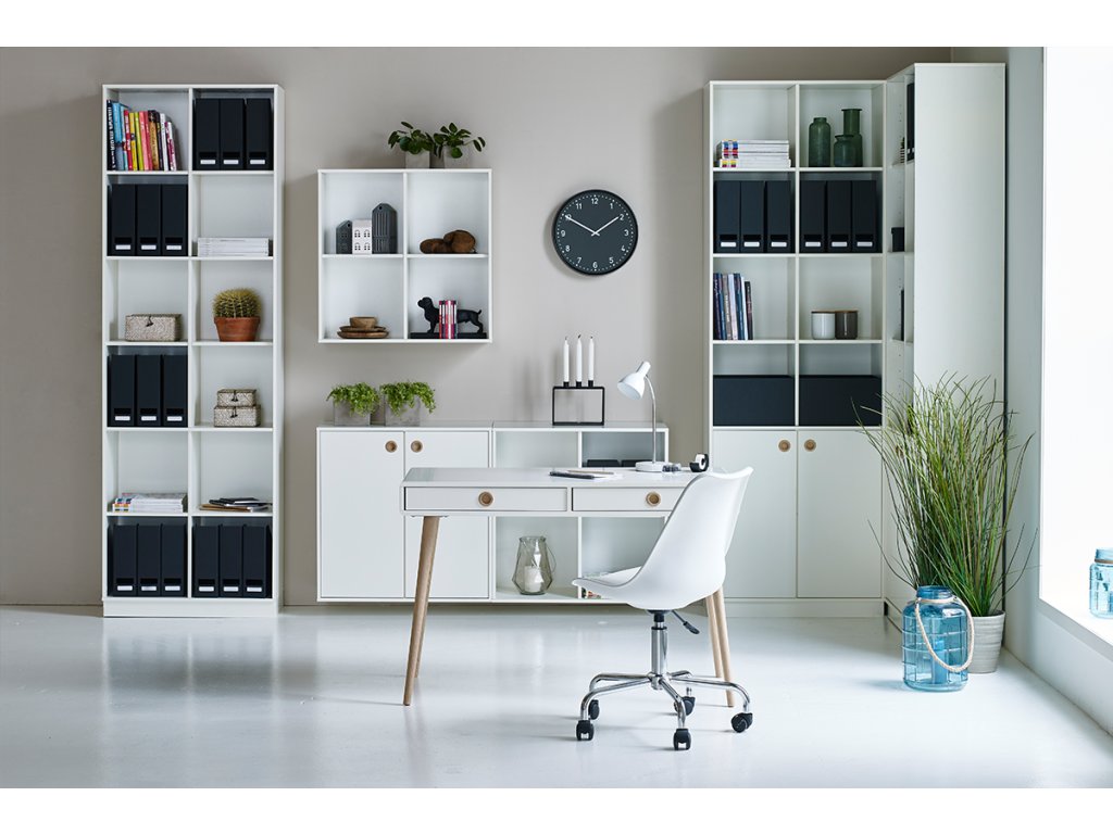 Stůl ve skandinávském stylu je krásný kus nábytku, který je k dispozici ve třech barvách, bílé, černé a šedé, s nohami a úchytkami z masivního dubového dřeva. Stůl má 2 zásuvky, do kterých se vejdou notebooky, psací potřeby nebo i malý počítač.