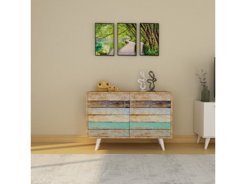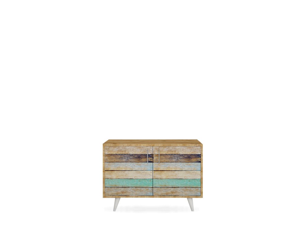 Designová DILARA Vás upoutá svými barevnými veselými dvířky, které jsou doménou na bílých nožkách stojící skříňky.
