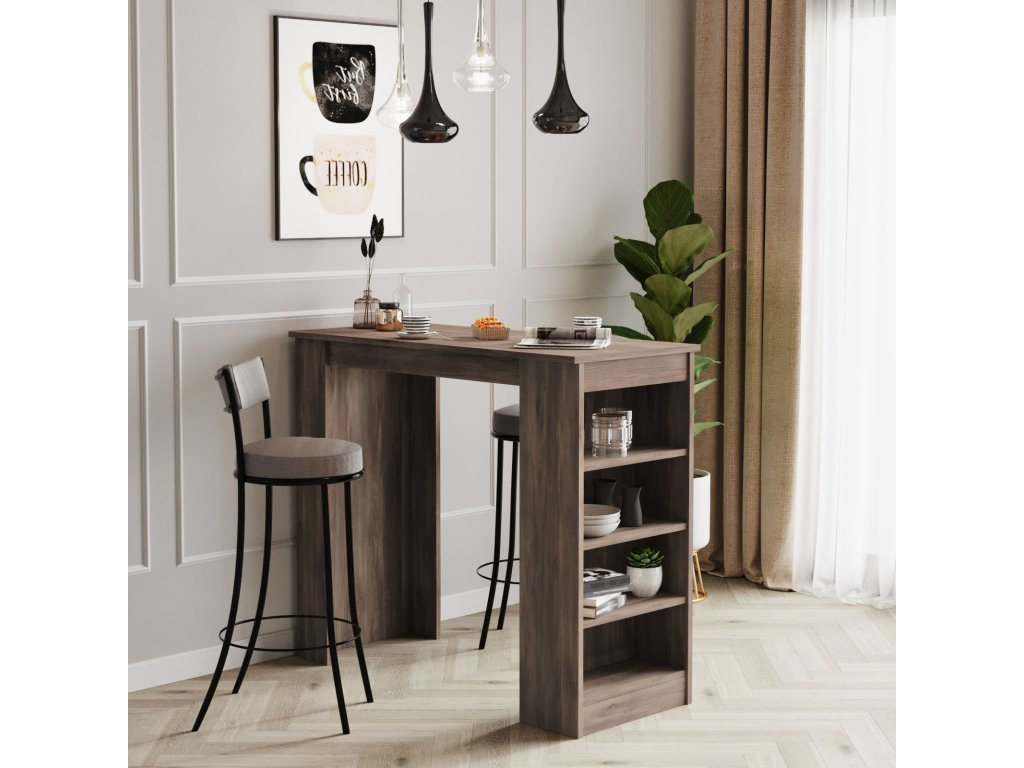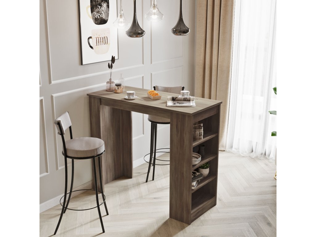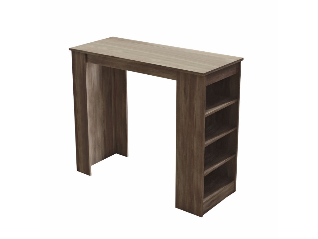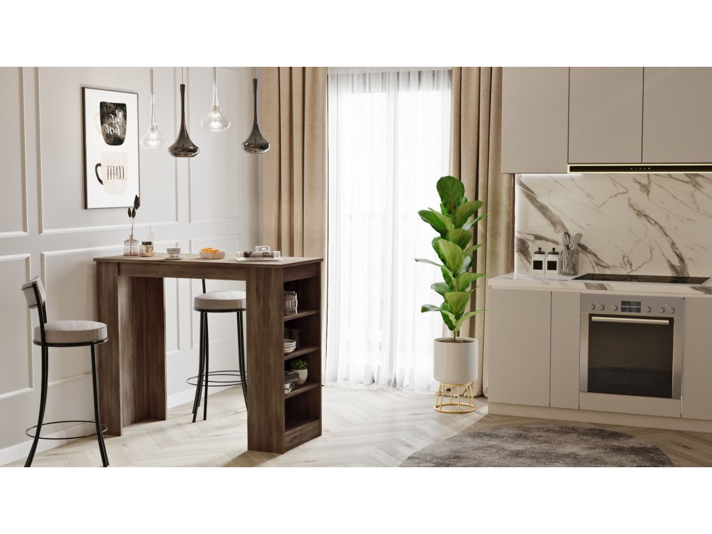 Ve hnědé barvě vyrobený barový stůl ST1 je nejen praktickým stolem, ale současně nabízí i úložné prostory.