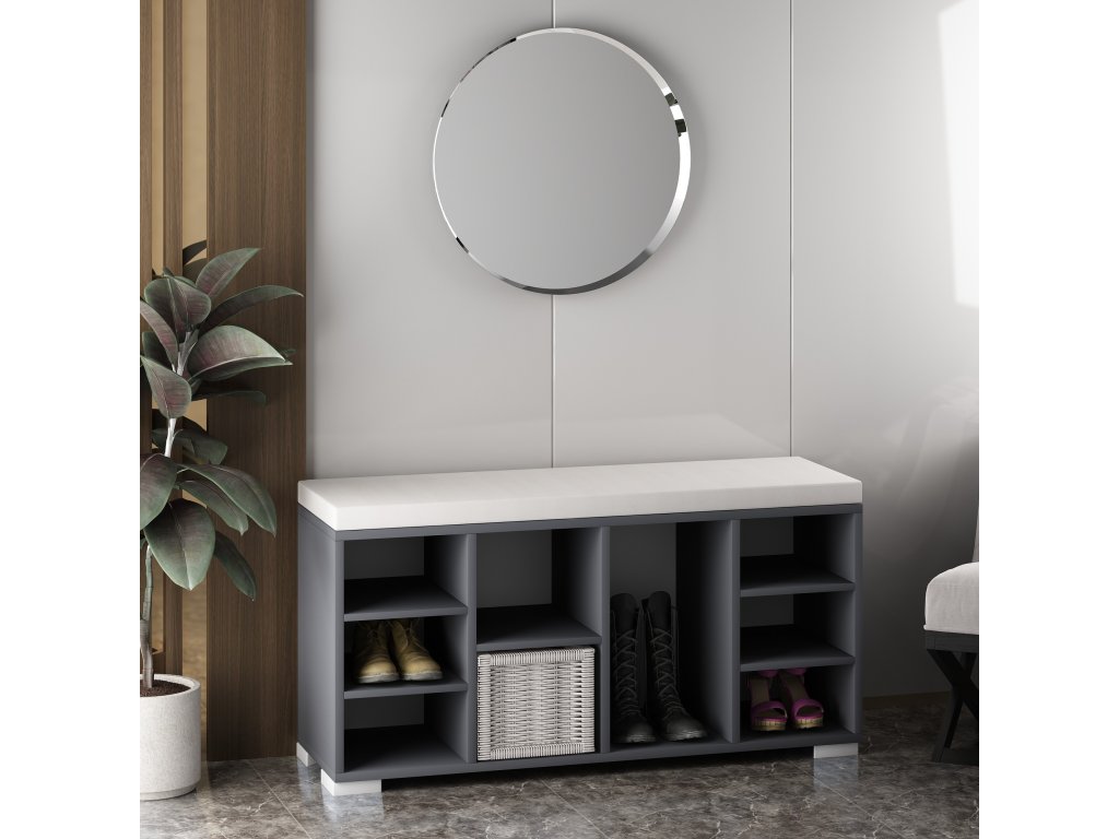 Botník BABIL je vhodným doplňkem do předsíně, kde se můžete posadit i uklidit Vaše oblíbené boty do úhledných regálů.