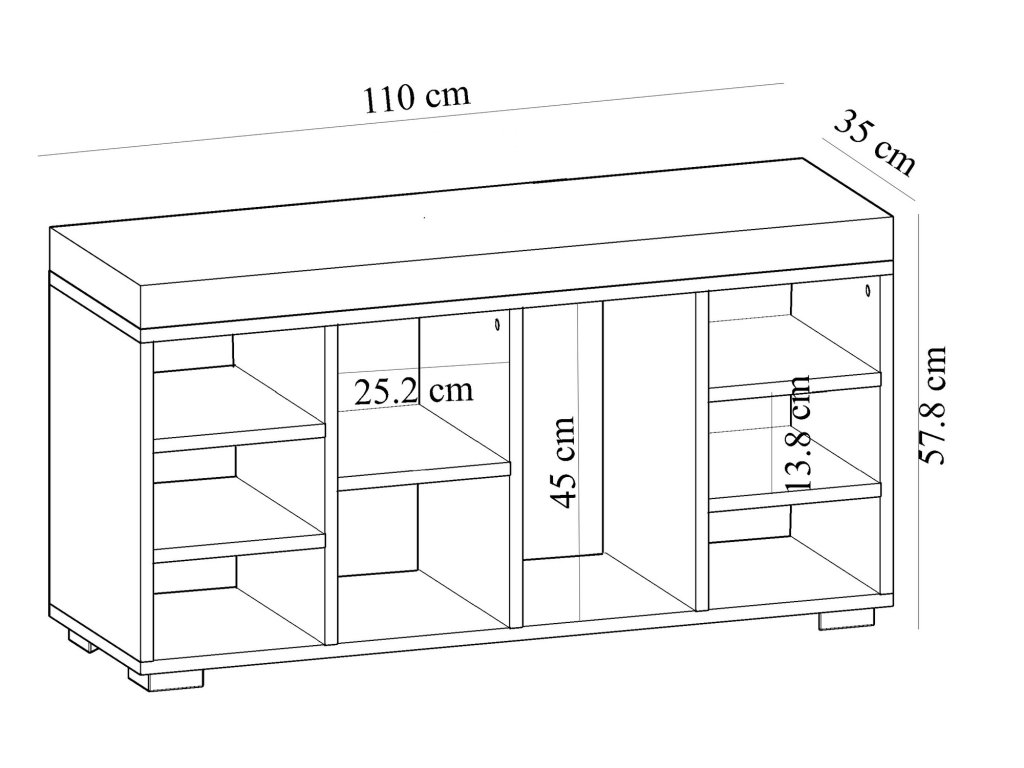 Rozměry: Šířka: 110 cm Hloubka 35 cm Výška: 57,8 cm