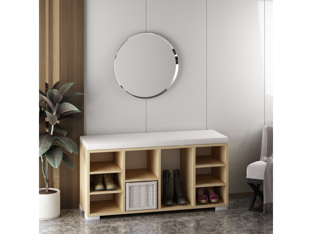 Praktický botník BABIL je skvělý i v tom, že má i bílou polstrovanou podložkou pro pohodlné usazení při obouvání nebo zouvání bot.