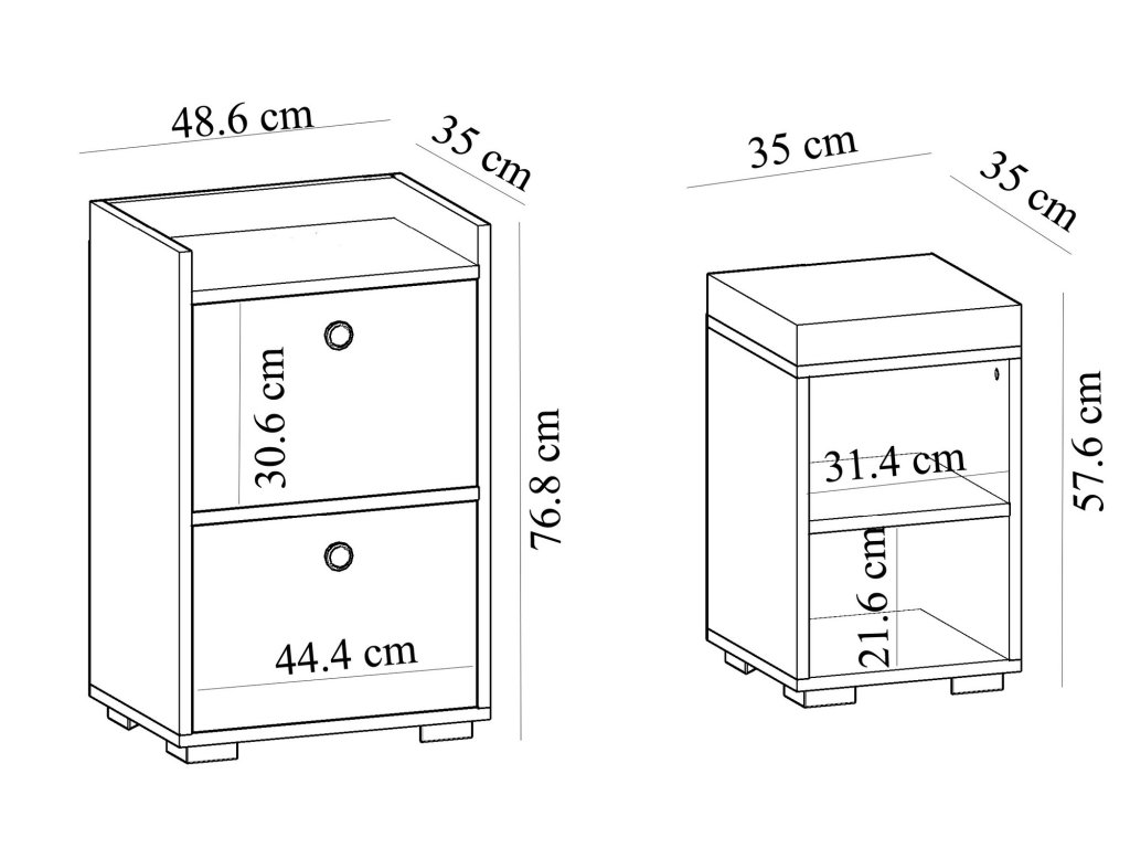 Rozměry většího botníku: Šířka: 48,6 cm Hloubka: 35 cm Výška: 76,8 cm
