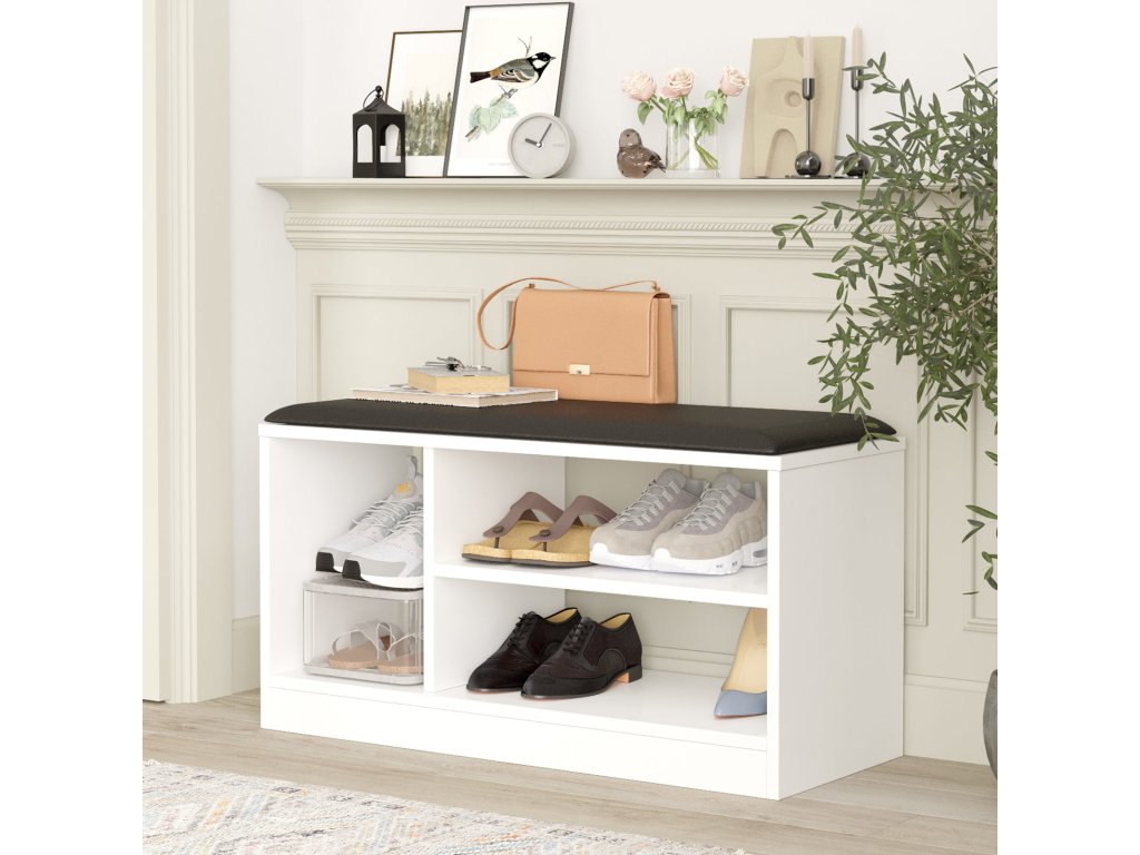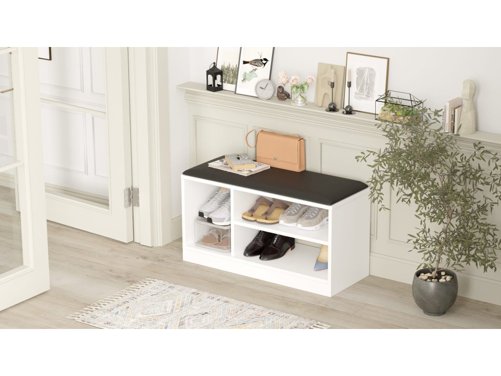 Botník je vhodným doplňkem do předsíně, kde se můžete posadit i uklidit boty do otevřených regálů.