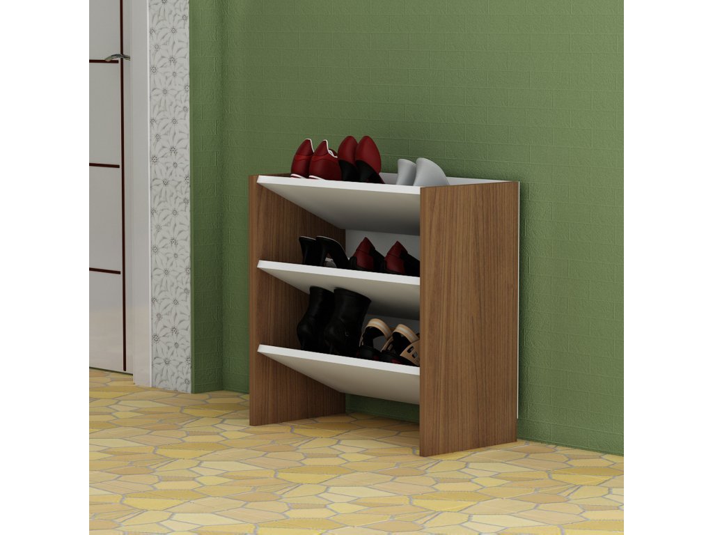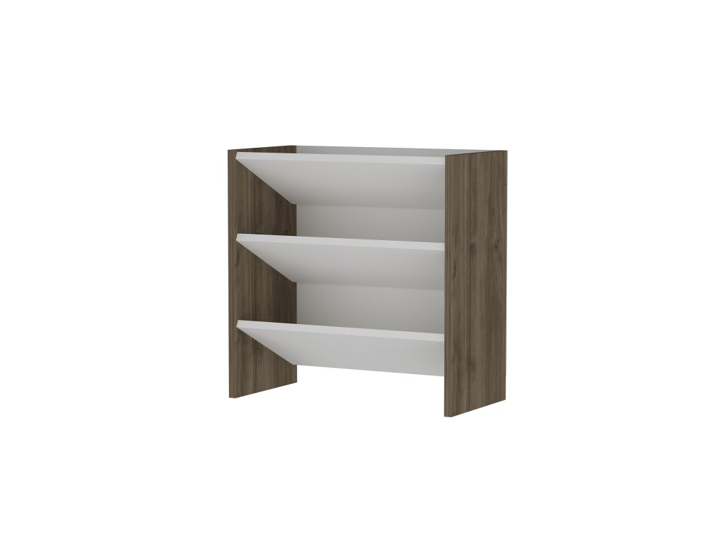 Je vyroben z 18mm silných desek pokrytých 100% melaminem v bílé barvě a v dekoru ořech.
