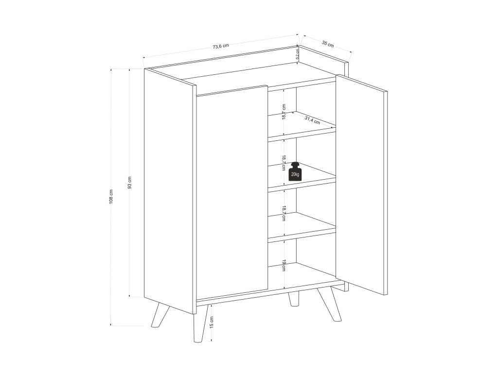 Rozměry: Šířka: 73,6 cm Hloubka: 35 cm Výška: 108 cm
