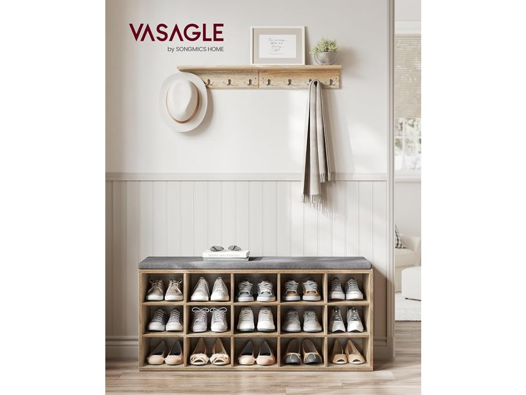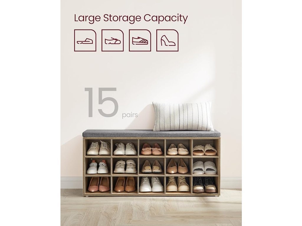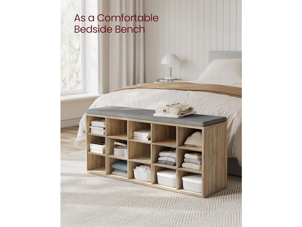Botník s lavicí 15 přihrádek 105 x 48 x 30 cm dub šedá