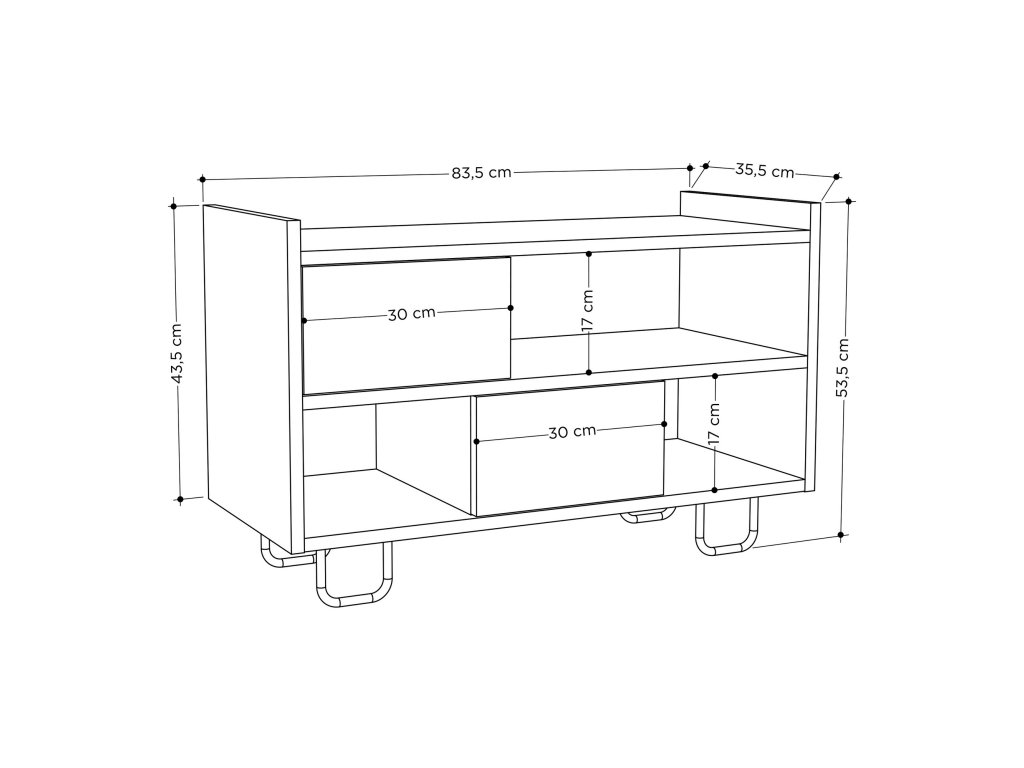 Rozměry: šířka 83,5 cm, výška 53,5 cm, hloubka 35,5 cm.