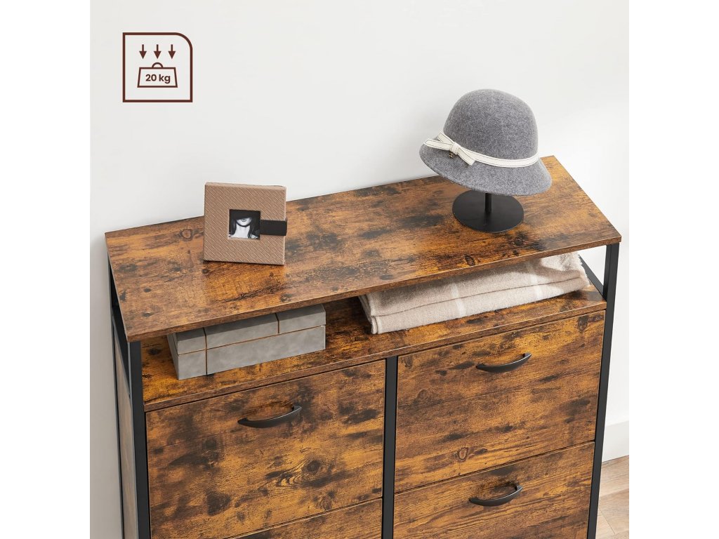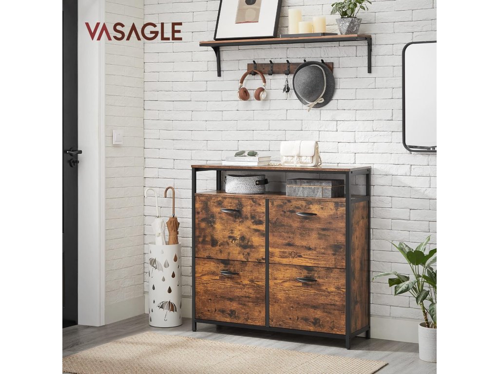 Jeho stylový design zaujme každého. Kombinace rustikální hnědé dřevotřísky a černé oceli vyzařuje elegantní industriální dojem, který okouzlí vaše hosty. Tento botník není pouze praktickým úložným prostorem, ale také vyniká svou designovou estetikou.