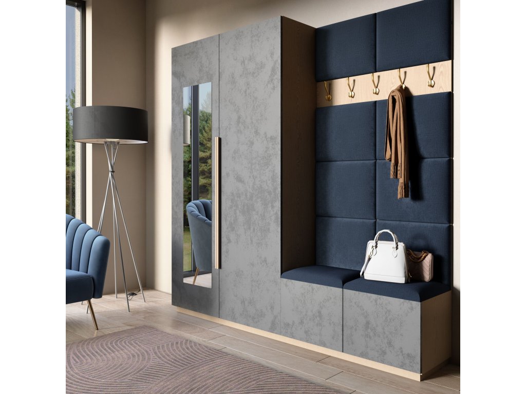 Čalouněný panel SET QUADRATTA 100x200 tmavě modrý