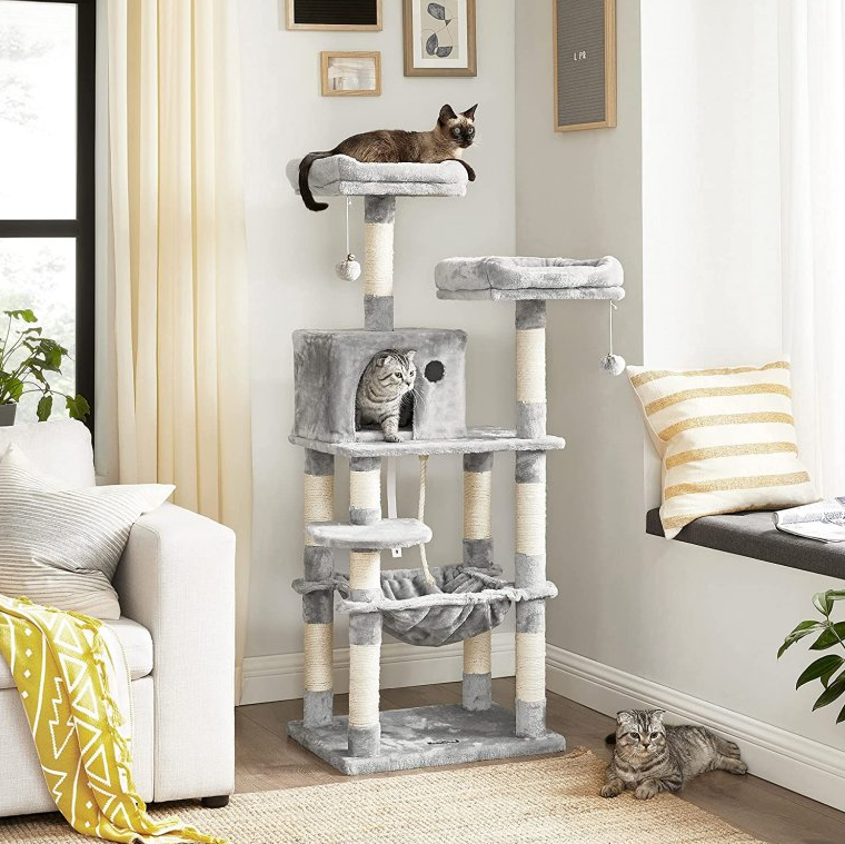 Pelíšek pro kočky 3 patra se škrabadlem 41 x 41 x 76 cm krémová