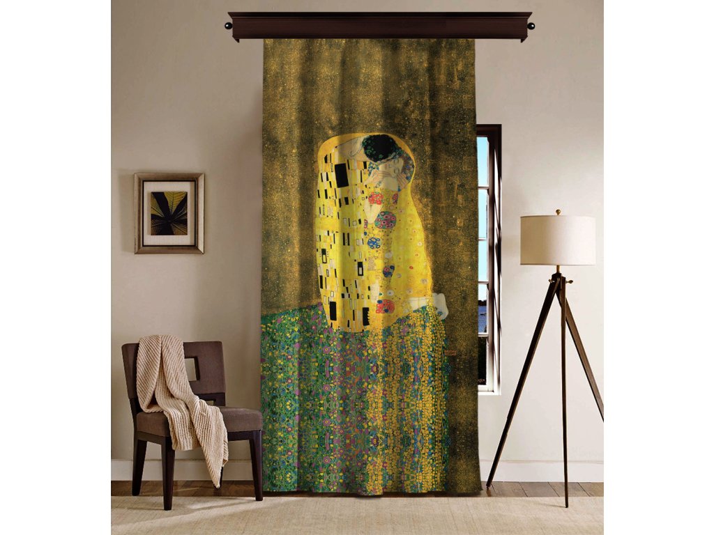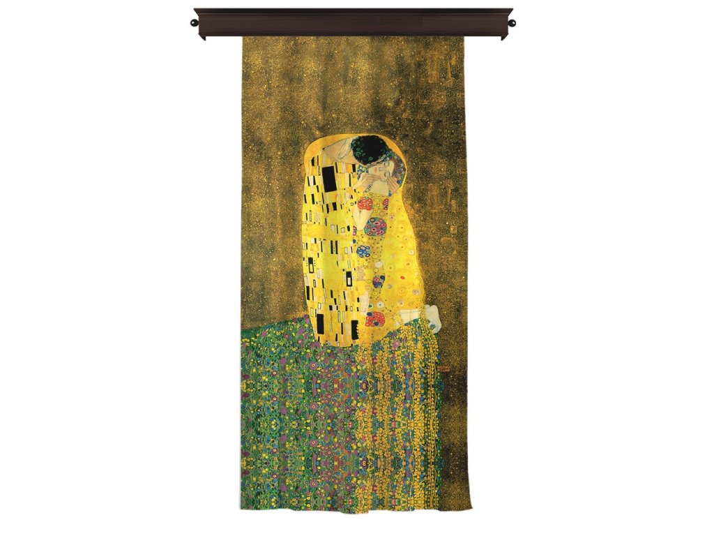 Dekorační závěs o rozměru 140 x 260 cm s motivem reprodukce POLIBEK - GUSTAV KLIMT.