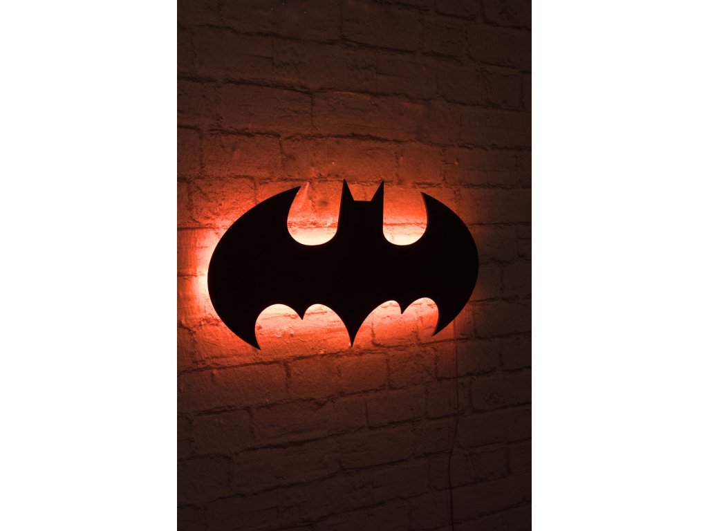 Černý znak maskovaného superhrdiny BATMANA je podsvícený světlem a přináší do jakéhokoliv interiéru až filmovou atmosféru.
