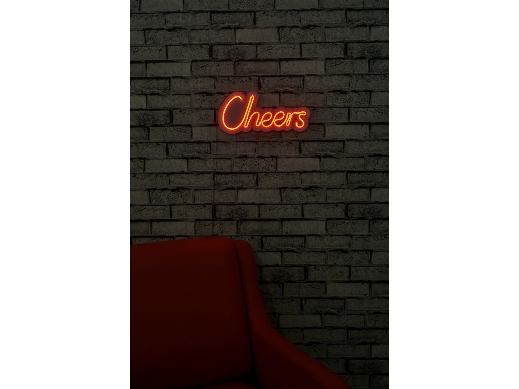 NEonový nápis CHEERS navíc zářící červeným světlem dodá každému interiéru pozitivní náladu.