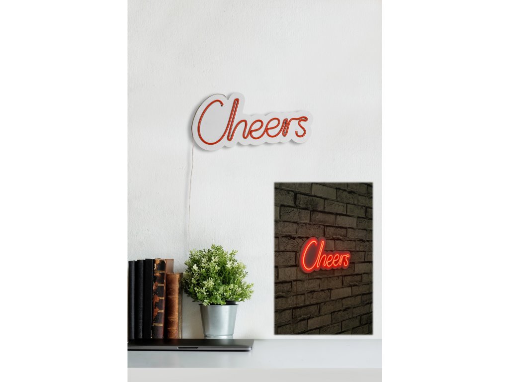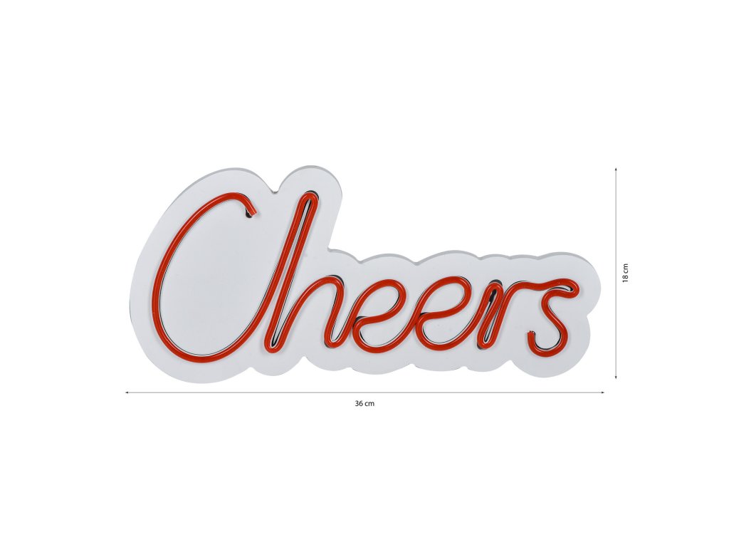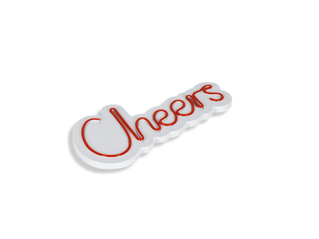 Nápis CHEERS je efektivně podsvícený červeným LED světlem a dodá každému interiéru připomenutí, že si vzájemně přejeme žít ve zdraví.