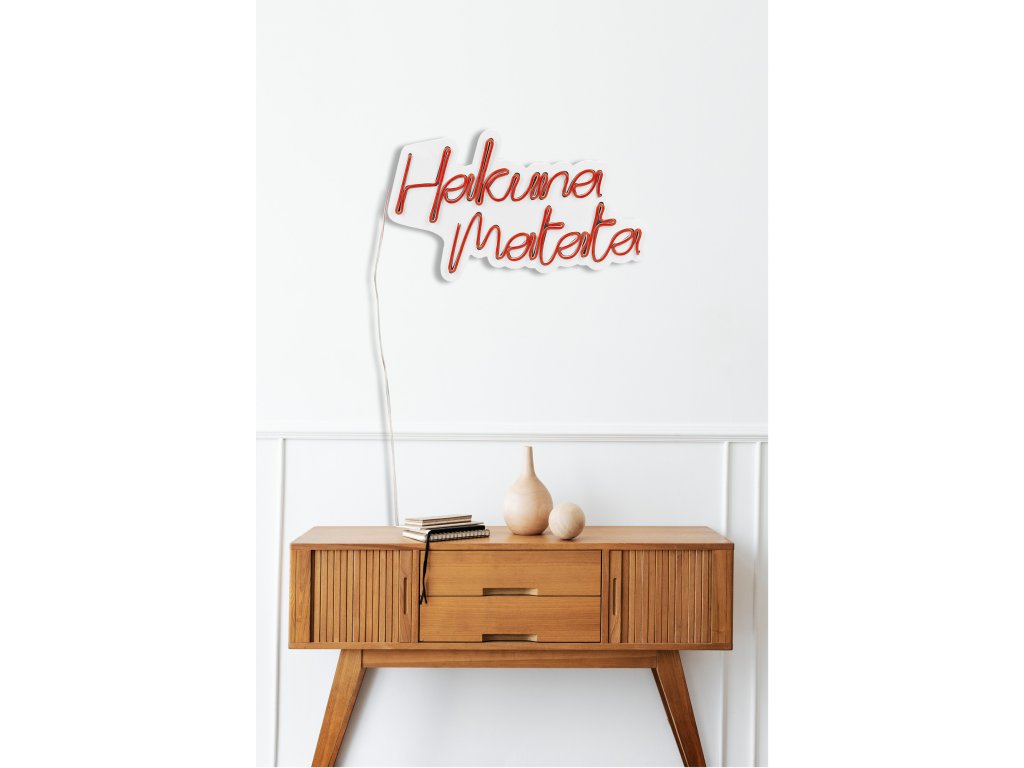 Černý nápis HAKUNA MATATA podsvícený žlutým světlem dodá do interiéru přítomnost lvího krále a nemusí jej mít jen milovníci pozitivních hesel.