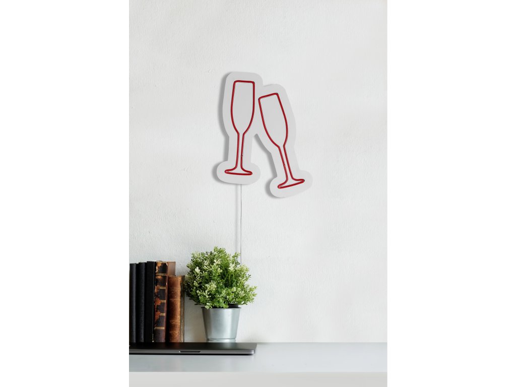 Silueta dvou šampusových sklínek je efektivně podsvícená žlutým LED světlem a nejvíce se bude hodit pravděpodobně do kuchyně, jídelny, nebo obývacího pokoje.