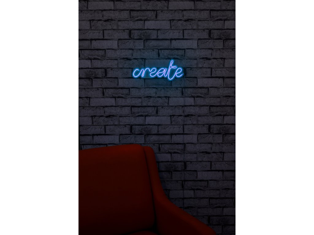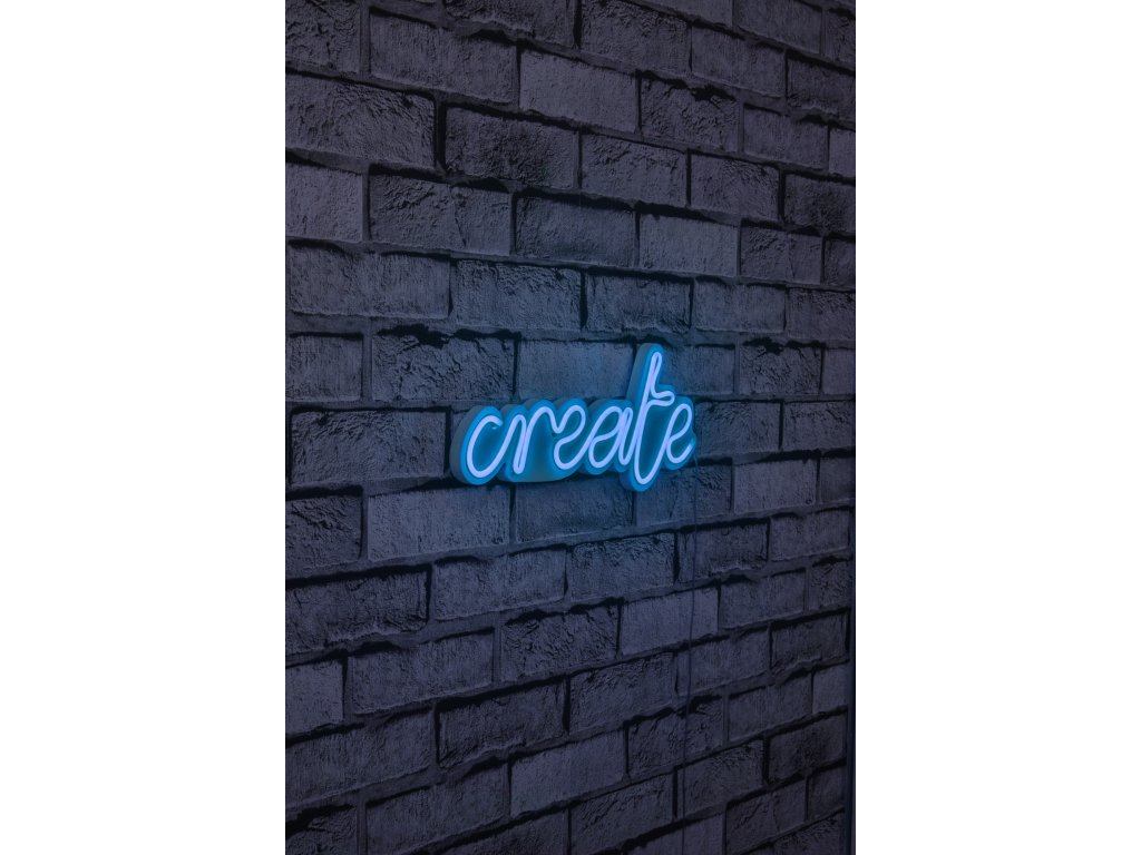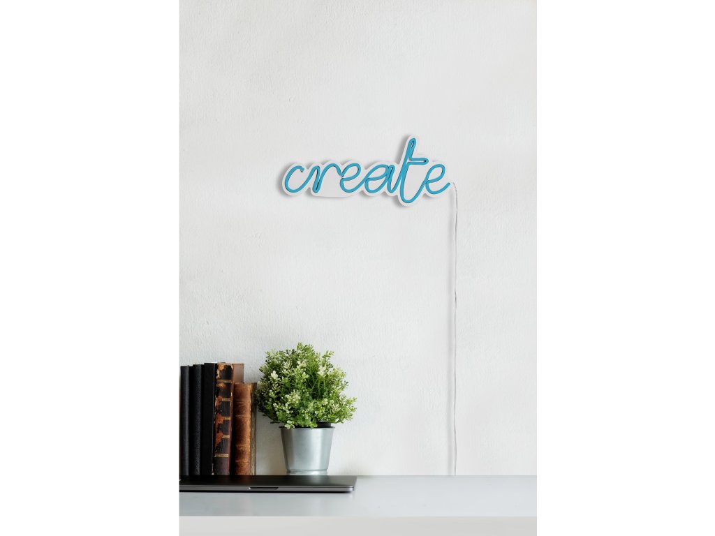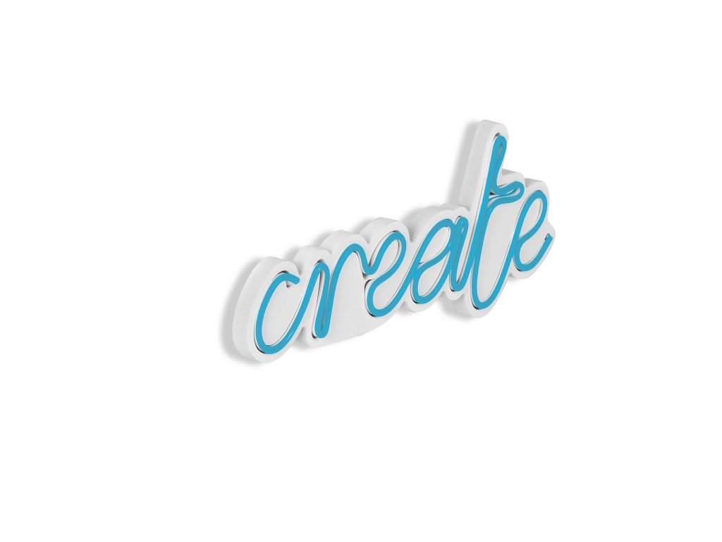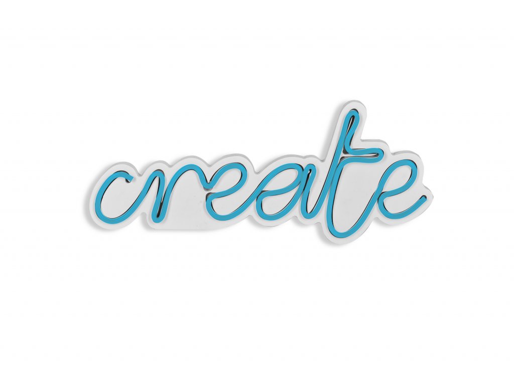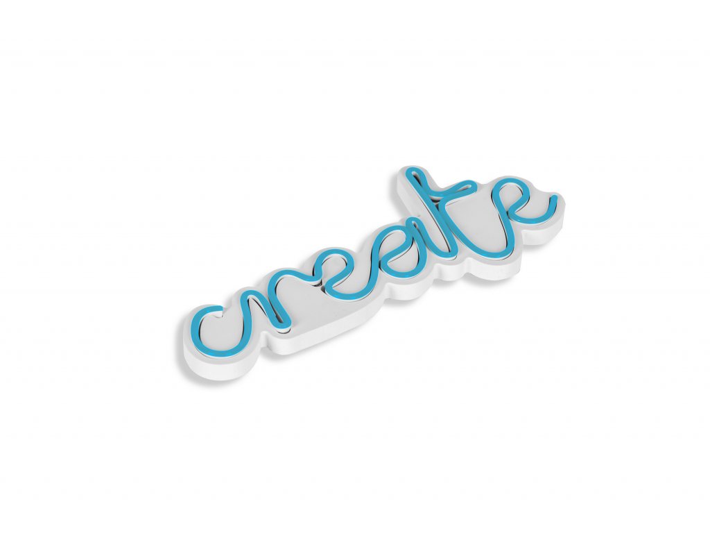 LED dekorativní nápis CREATE v modrém provedení.