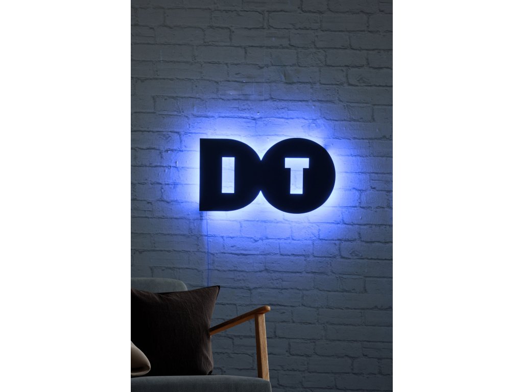 Anglický nápis DO IT je efektivně podsvícený modrým LED světlem a dodá každému interiéru jistý náboj, neboť nás osvětleným nápisem nabádá: UDĚLEJ TO!