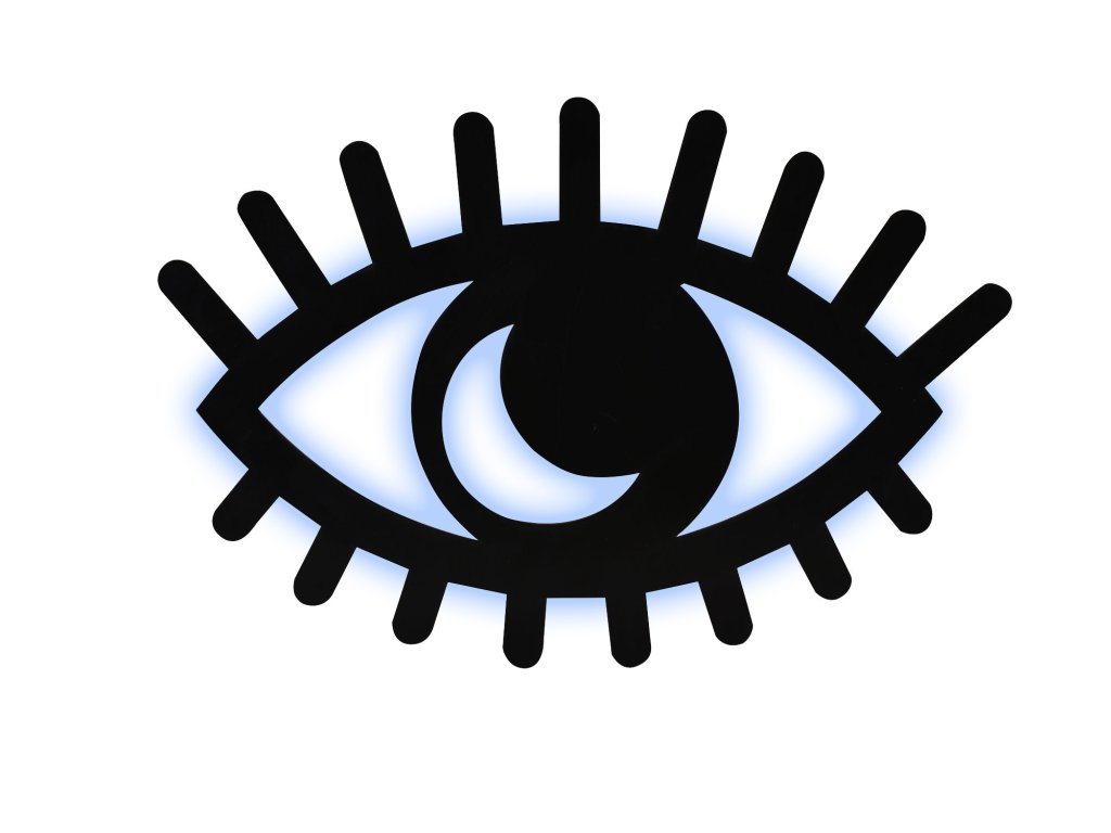 Černé OKO podsvícené modrým světlem může připomínat myšlenku: „vidět a být viděn“.
