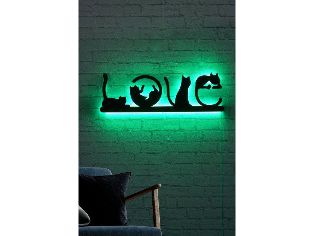 Nápis LOVE je efektivně podsvícený zeleným LED světlem a dodá každému interiéru informaci, že tady milují kočky.