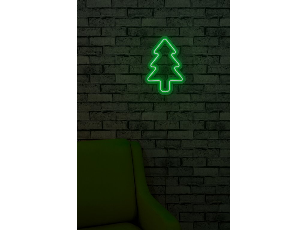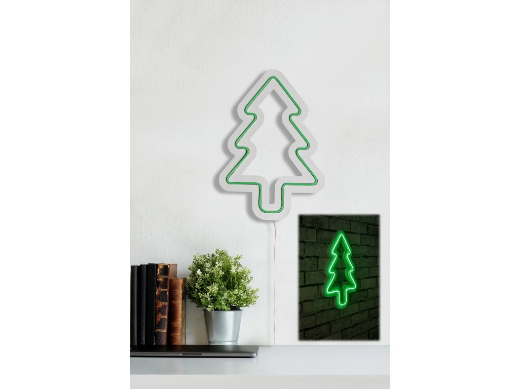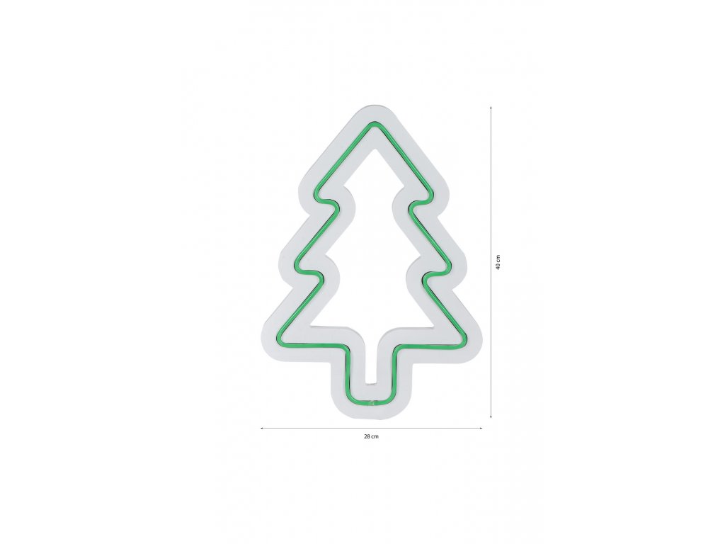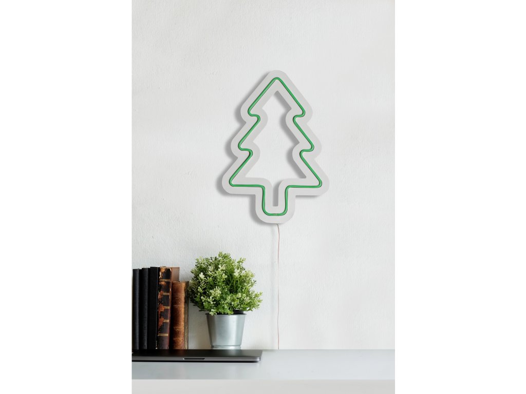 Z kvalitní pěnové PVC šablony vyrobená nástěnná dekorace ve tvaru smrčku a je zvýrazněná zelenými LED neonovými proužky a může v jakékoliv místnosti navozovat až vánoční atmosféru.