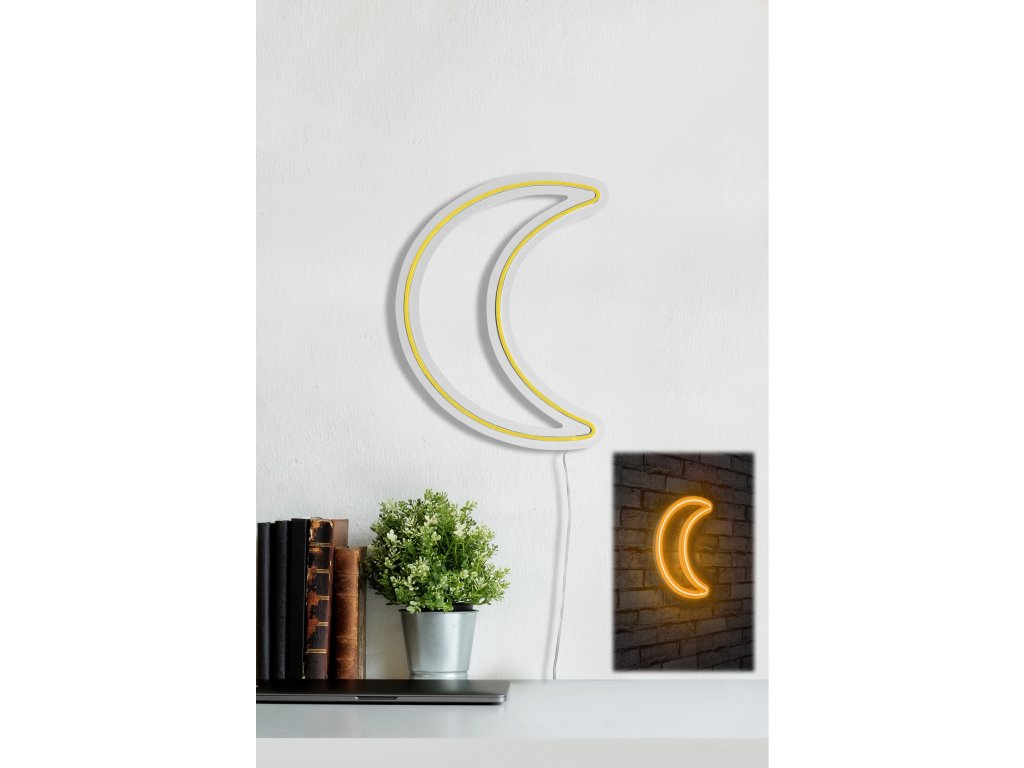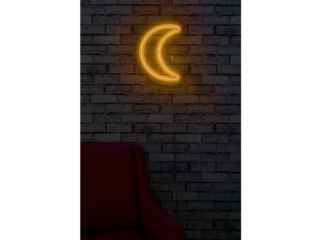 Symbol půlměsíce je vytvořen neonovým světlem žluté barvy a možná právě takové dekorativní LED osvětlení potěší právě vás.