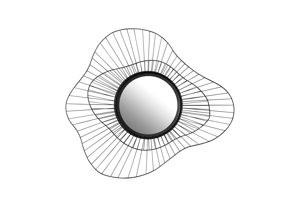 Kruhové 4 mm silné zrcadlo je zasazeno do kovové spleti drátů, tvořících kolem dokola něco jako okvětní lístky vlčího máku a celkový vzhled působí nanejvýš elegantně.