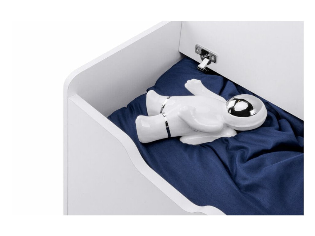 Bílo-šedý box na hračky je vyroben ze silné, pevné desky a pevného kartonu, zkosené hrany chrání děti před zraněním. Jedná se o mimořádně praktické řešení, které vyhovuje potřebám mladších i starších dětí. Díky své speciální konstrukci jsou výjimečně stabilní bez ohledu na okolnosti.