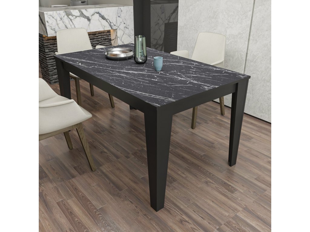 Náš jídelní stůl, který se vyznačuje podmanivou kombinací černé a mramorové barvy, vyzařuje nadčasový šarm, který bez problémů doplní jakýkoli interiér. Elegantní a moderní design dodá vašemu prostoru nádech sofistikovanosti a vytvoří vizuálně přitažlivý ústřední bod, který zanechá vaše hosty v úžasu.