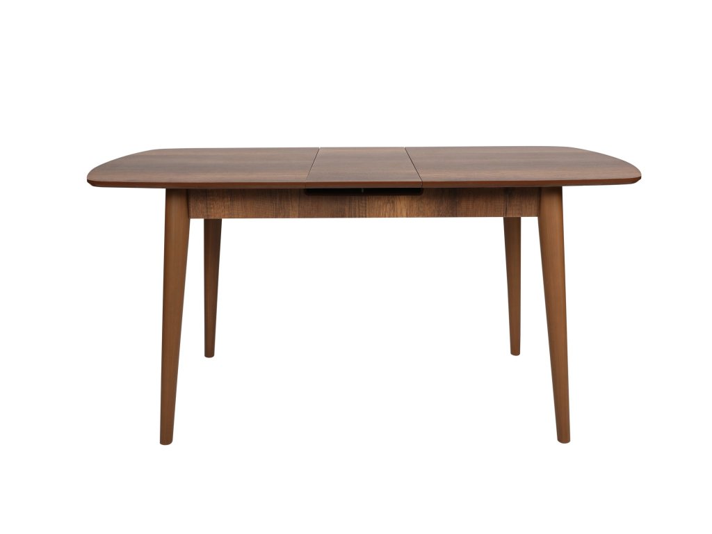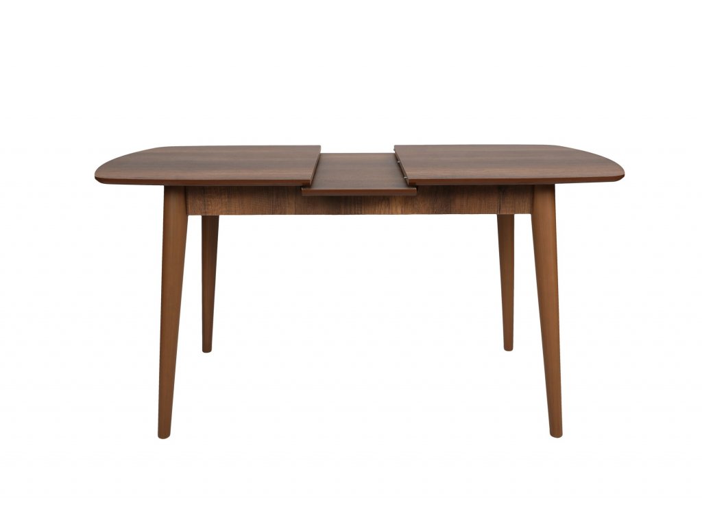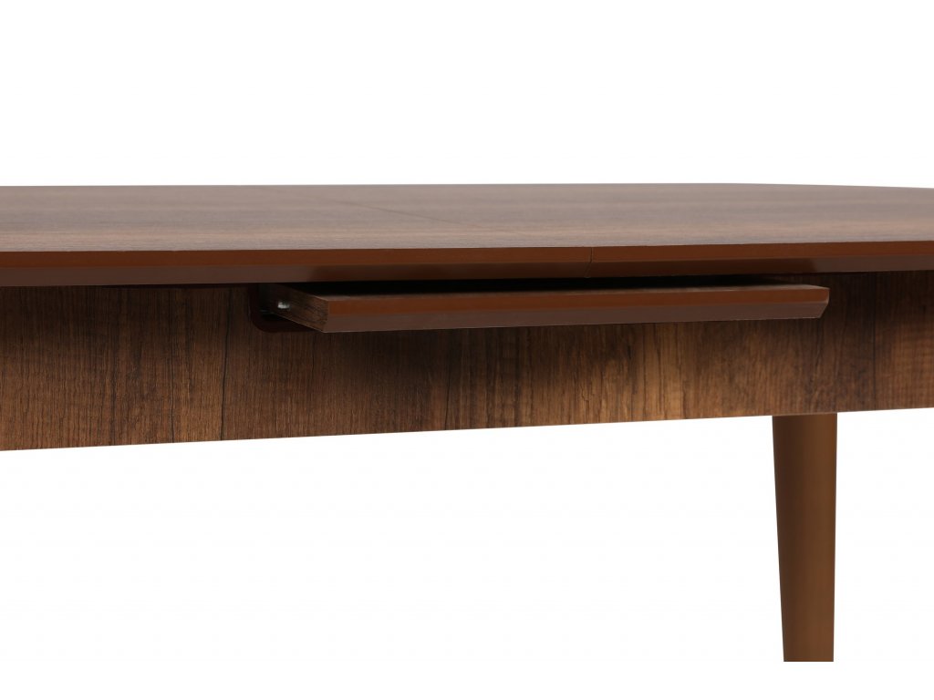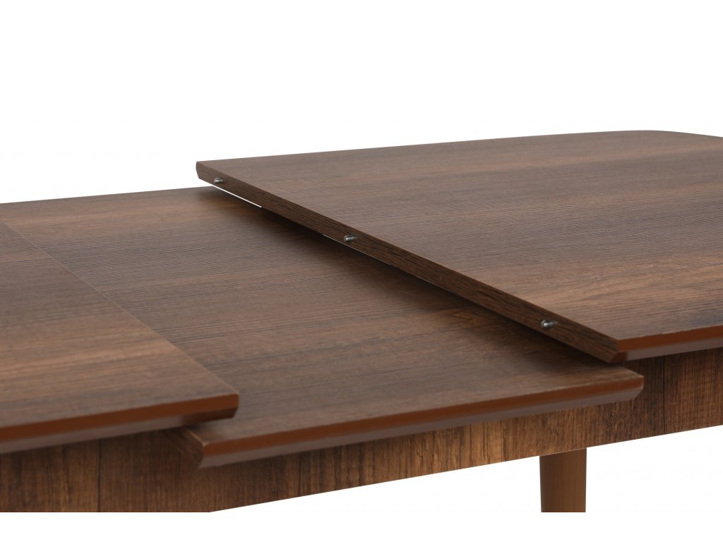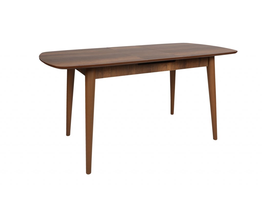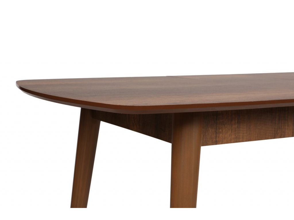 V dekoru ořech vyrobený klasický jídelní stůl RETRO má oblí tvary a rozložitelnou desku.