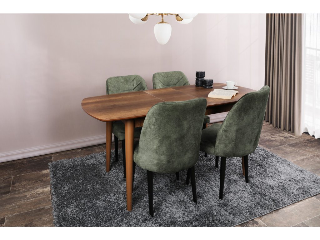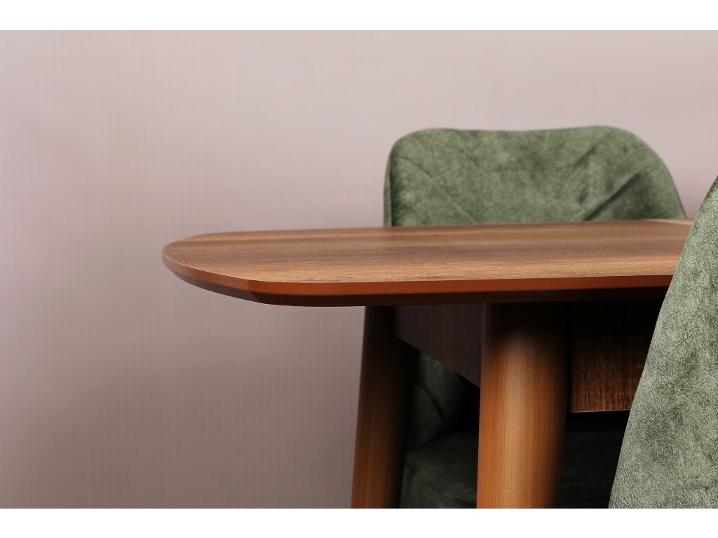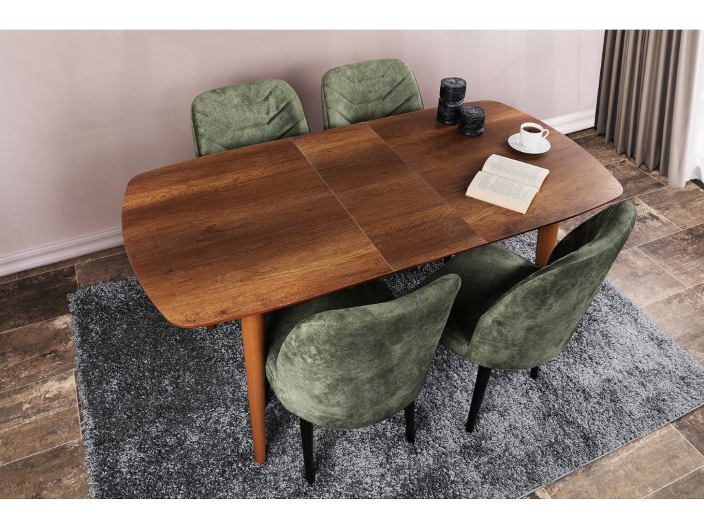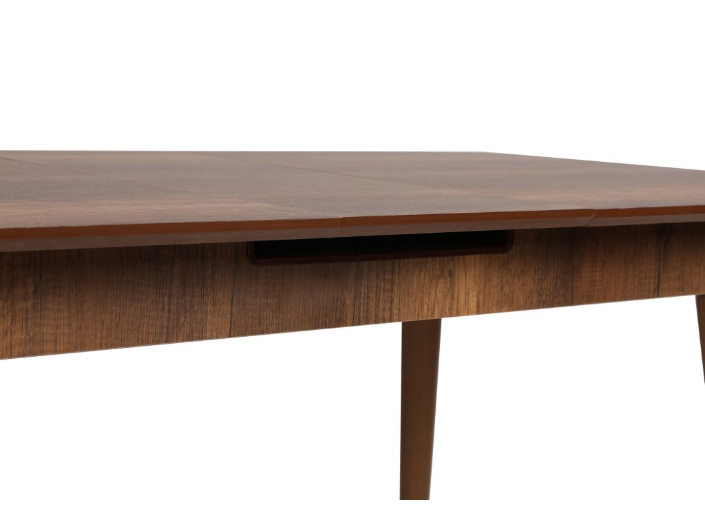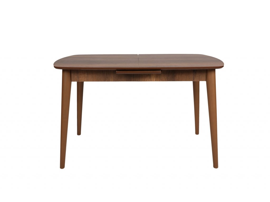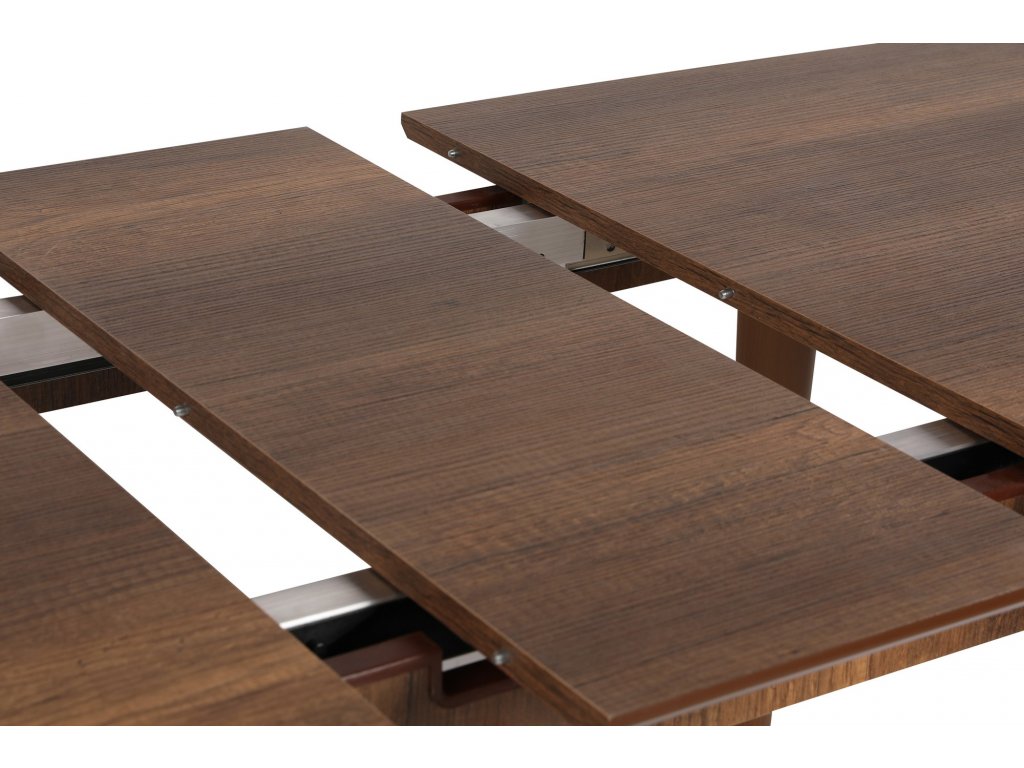 V dekoru ořech vyrobený klasický jídelní stůl RETRO má oblí tvary a rozložitelnou desku.