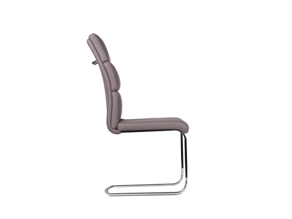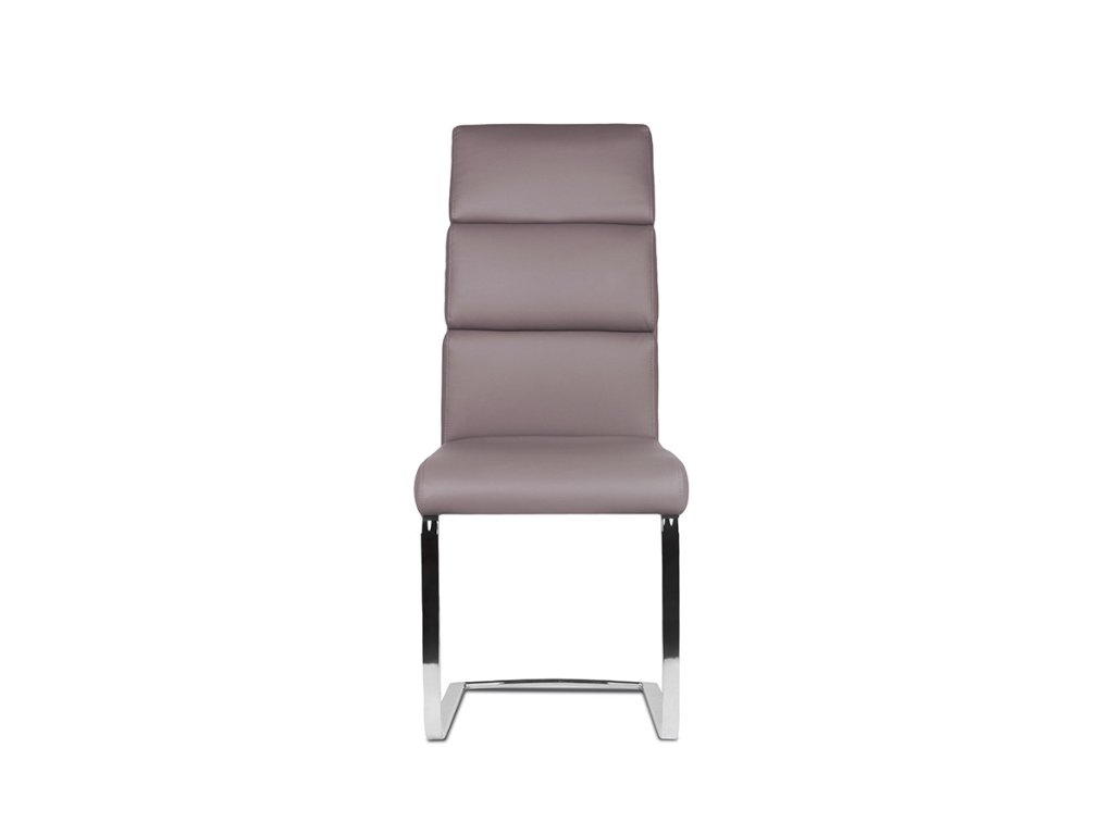 Moderní jídelní židle v béžové barvě. Židle má na zadní části kovové madlo.