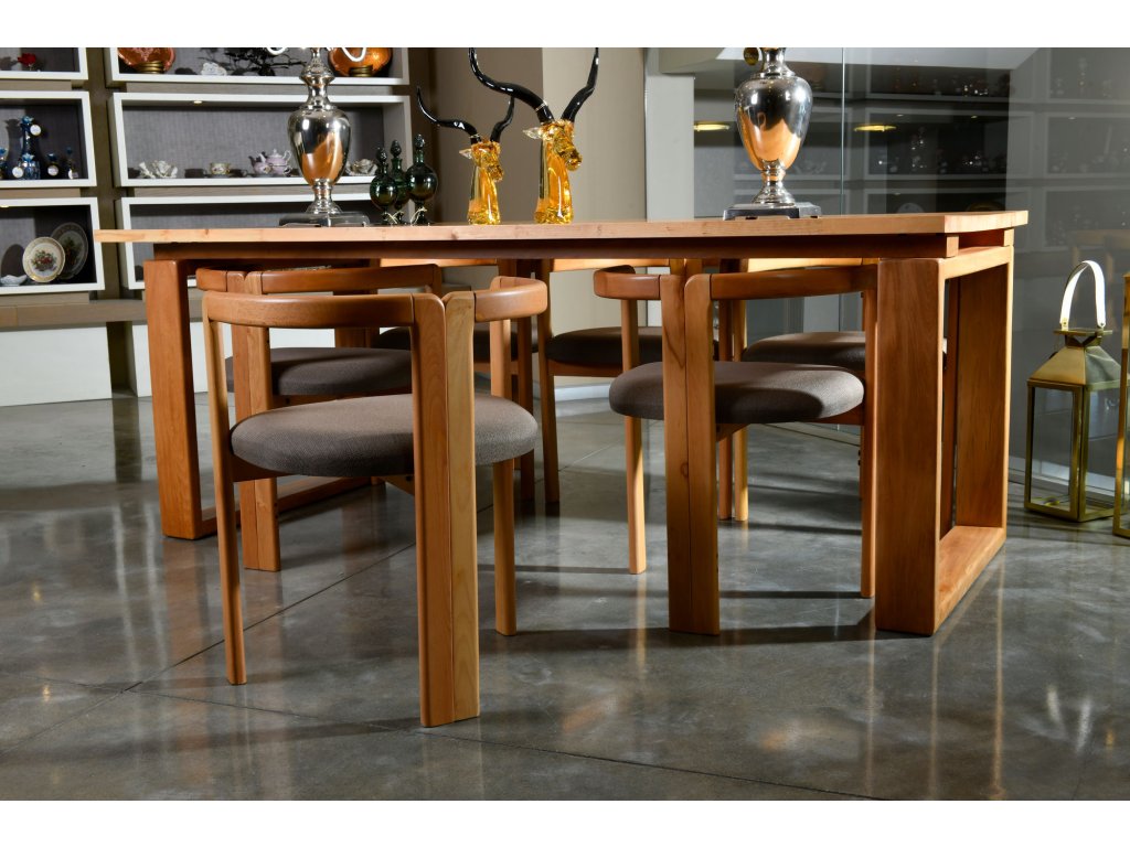 CERY je jídelní židle, jejíž tělo je vyrobené v dekoru dub a je doplněno o šedé polstrování.