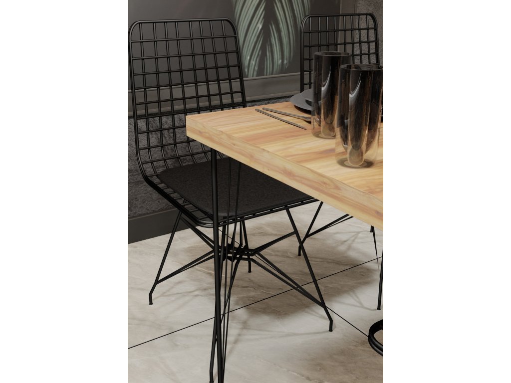 Jídelní židle SKYE je černá s vyplétaným sedákem a důmyslně propojenýma nohama.