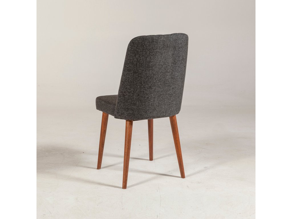 Židli nesou čtyři stabilní habrové nohy vdekoru ořech a sedací a opěrná část je oblečena do antracitového polstrování.