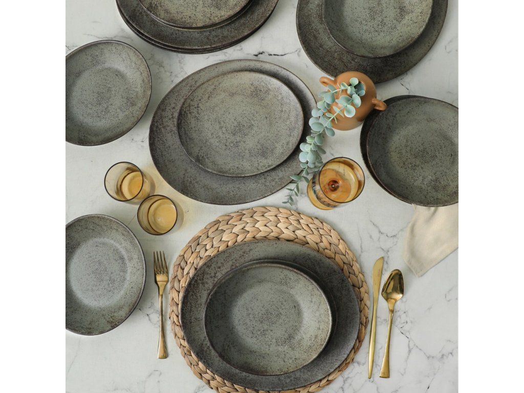 Naše jídelní souprava je nejen stylová, ale také vysoce funkční. Keramický kameninový materiál je odolný vůči tepelným šokům, což zaručuje, že vaše talíře vydrží zkoušku časem. Tvrdost povrchu zabraňuje poškrábání a poškození, zatímco antibakteriální vlastnosti udržují vaše nádobí čisté a bezpečné při používání.