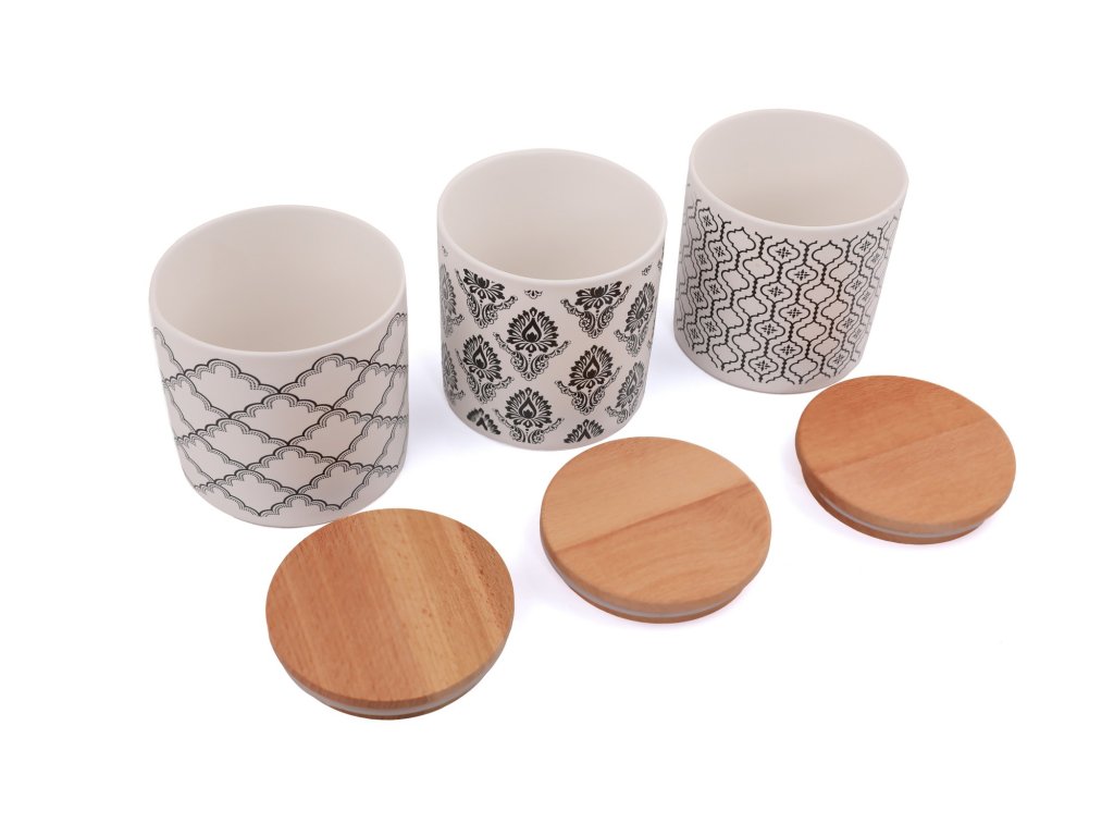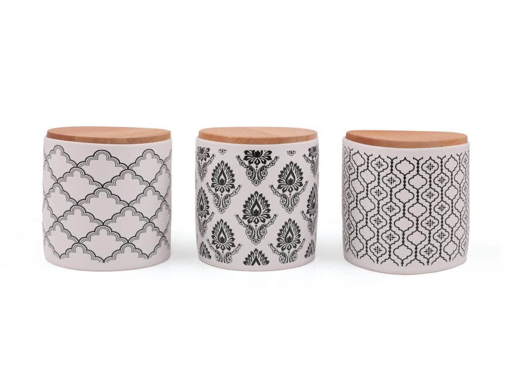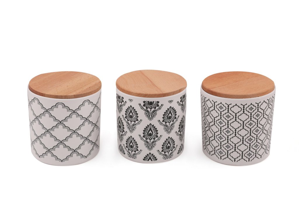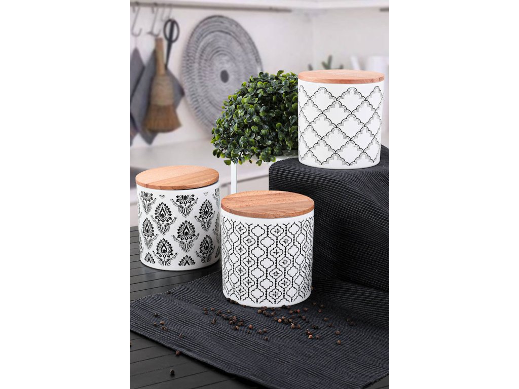 Keramický zásobník na potraviny (3 kusy) ARES bílý zdobený