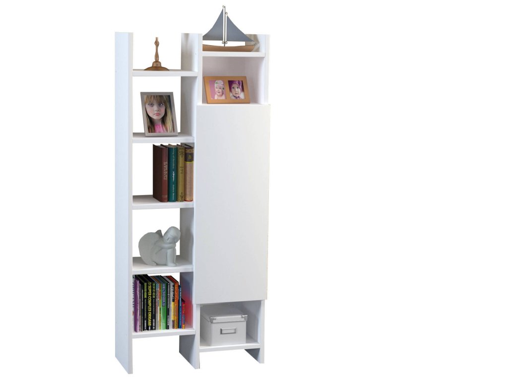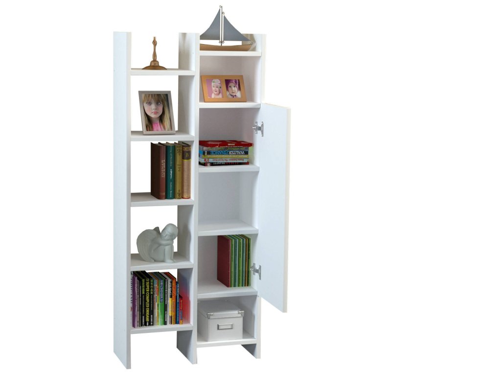 Prostorná knihovna ADALINE v bílém dekoru s prostorem na knihy i doplňkové dekorace.