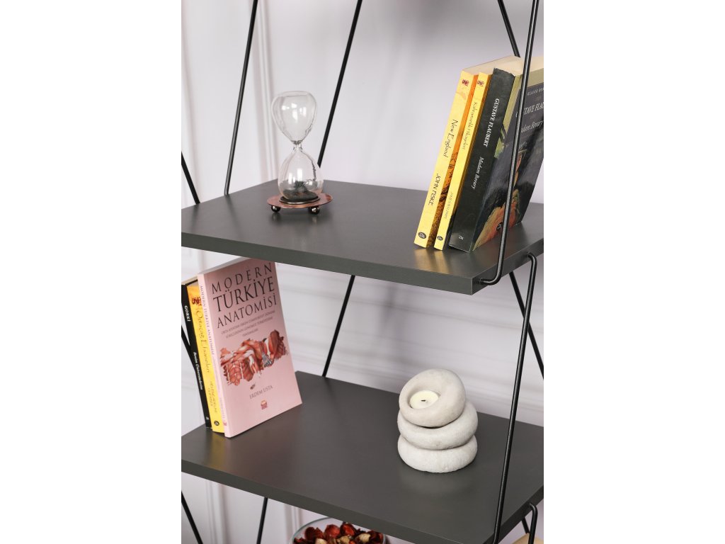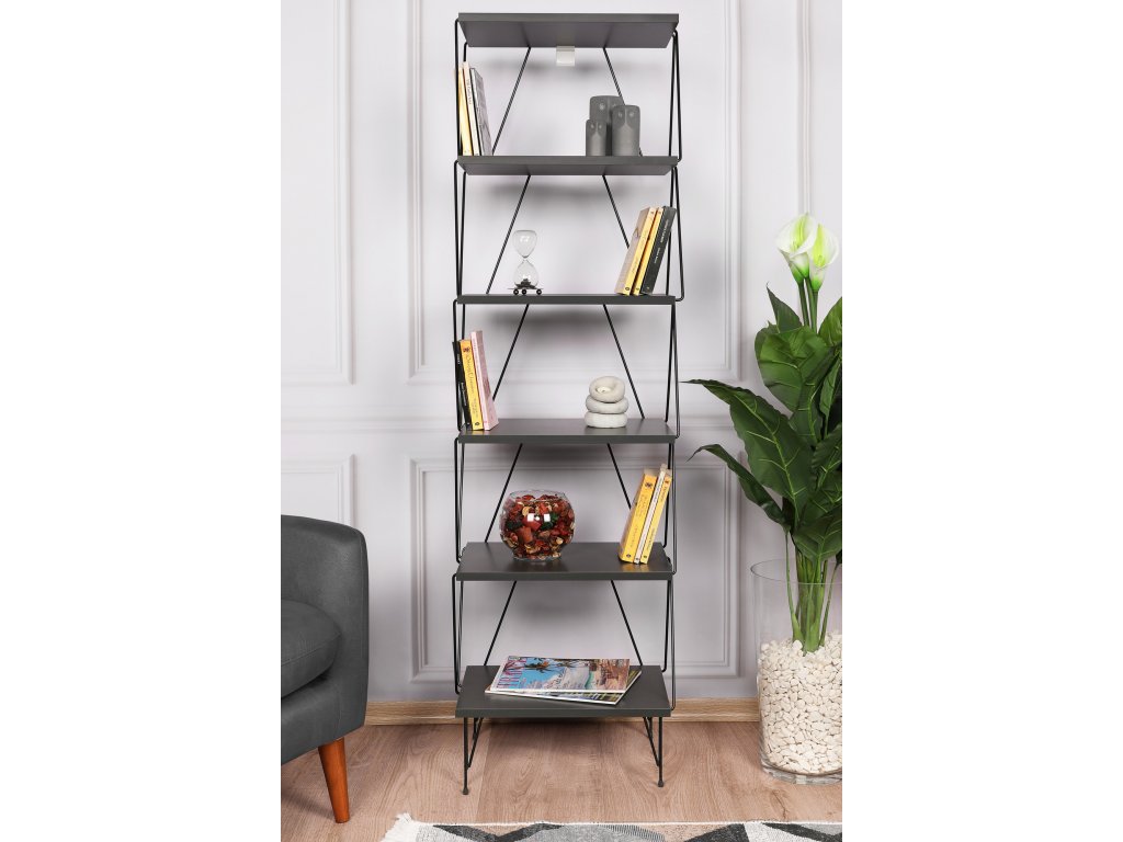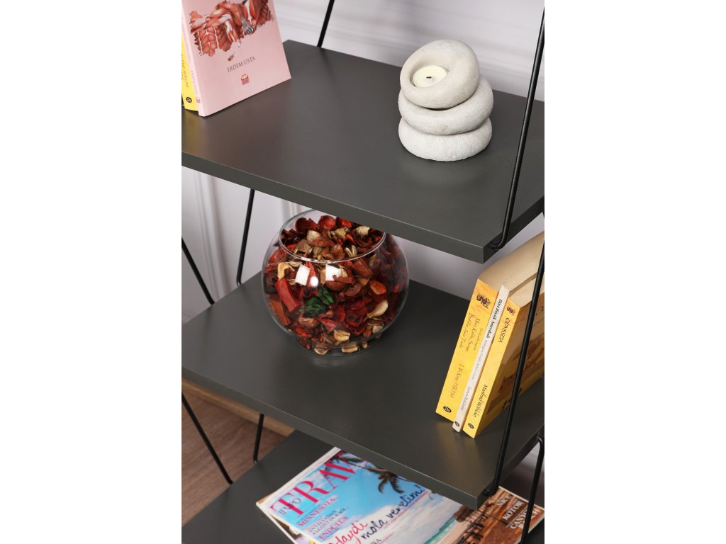 Černo-antracitová knihovna BALABAN může být směle postavena do jakékoliv místnosti, kde chybí výraznější prvek.