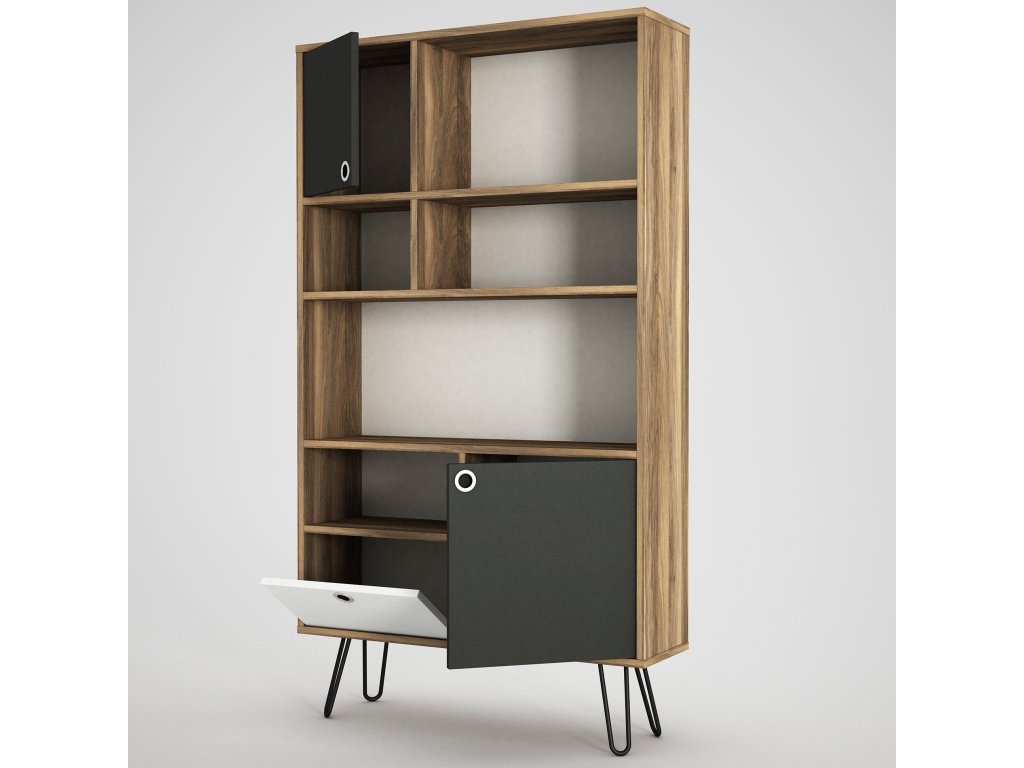 Knihovna KARAMEL ořech, antracit, bílá