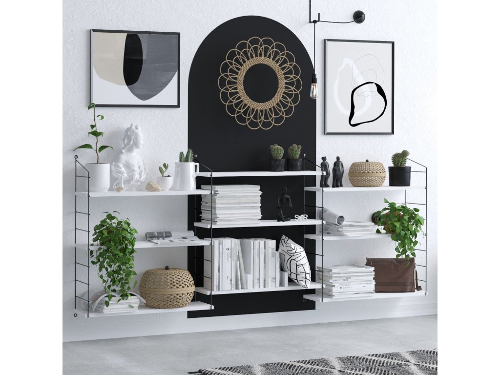 Černo-bílá nástěnná knihovna LUNGO Vám nabízí dostatek otevřeného úložného prostoru.