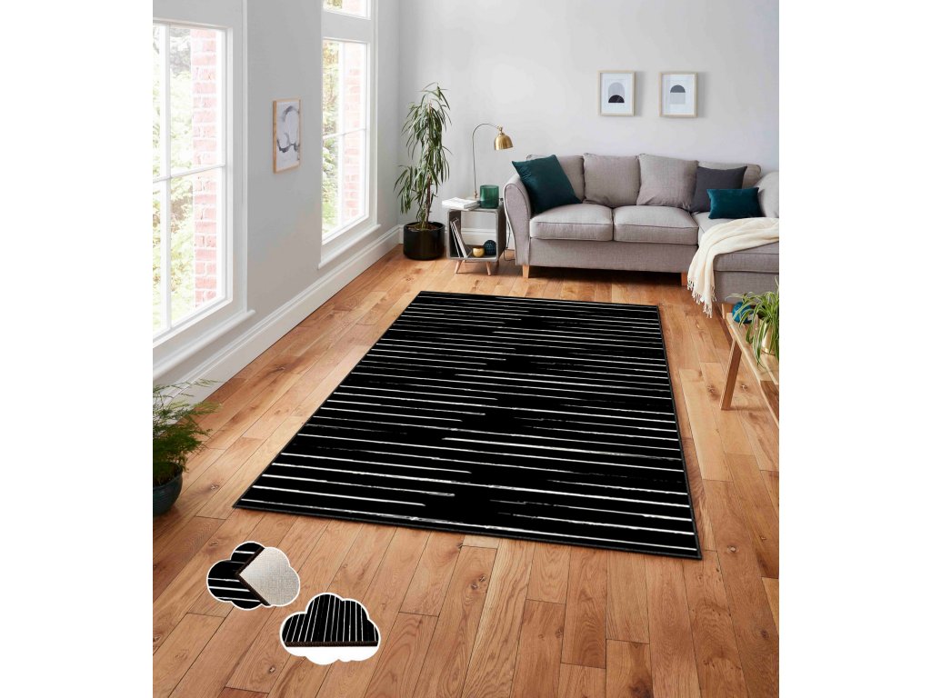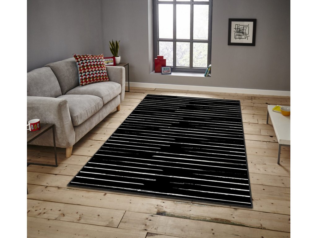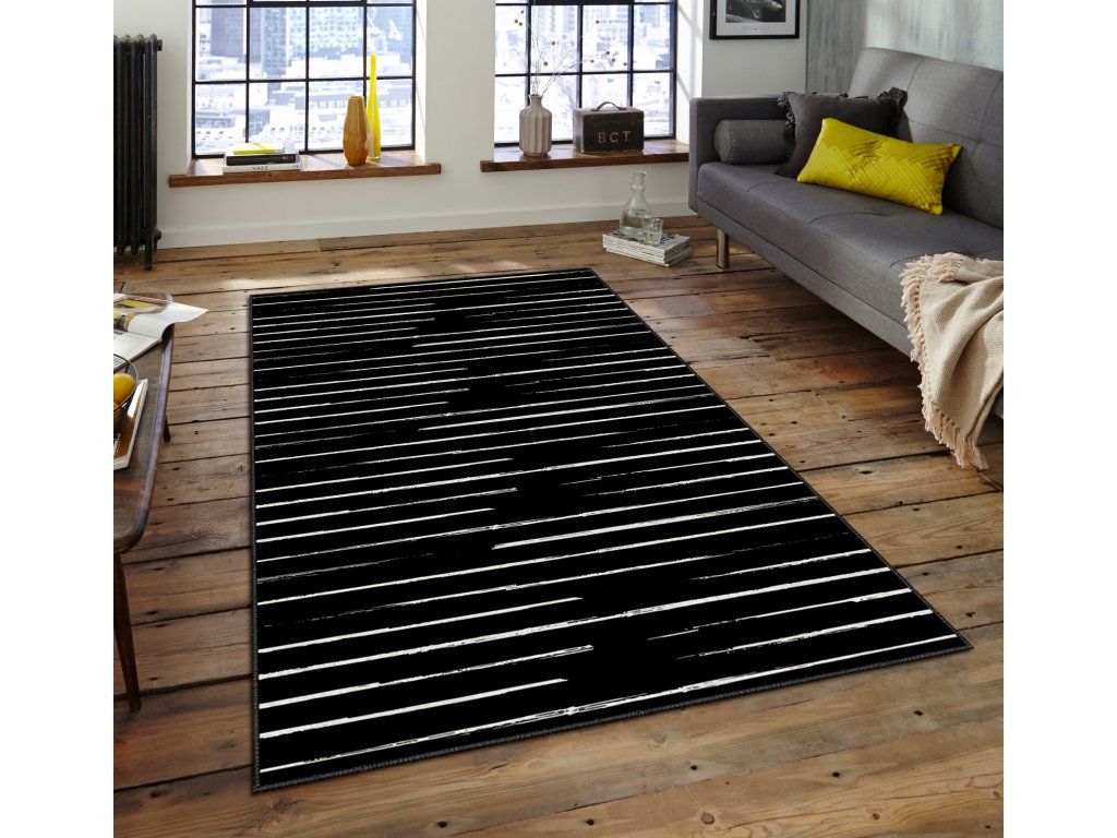 Koberec(100 x 140 cm) ASR CRPT-57 černý s bílými pruhy
