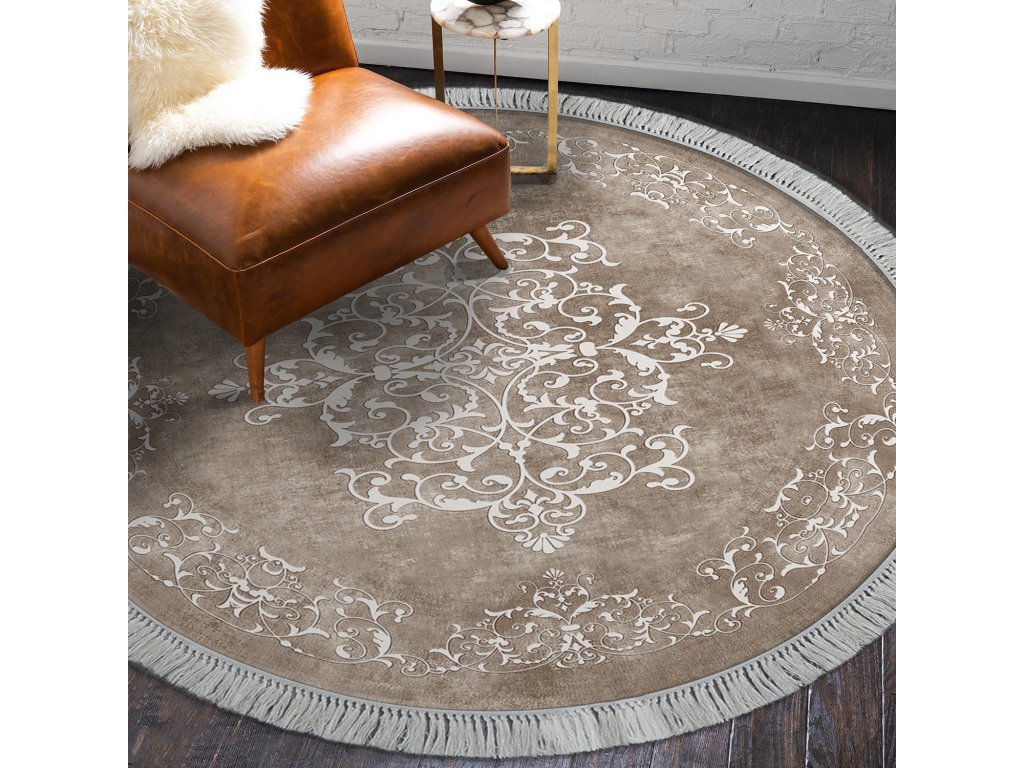 Kulatý koberec RING s jemným vzorem.