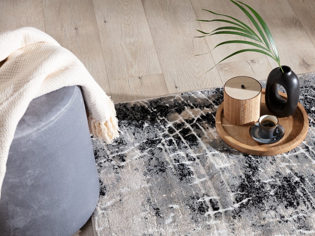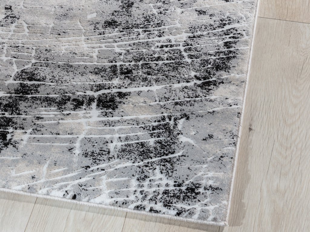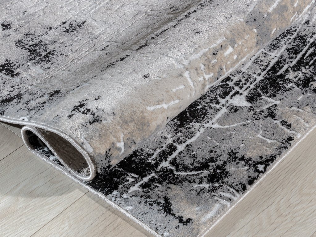 Koberec BARDOT GREY svou strukturou připomíná povrch Měsíce. Povrch koberce je tvořen abstraktními skvrnami a čarami v různých odstínech šedé. Díky tomu dokonale zapadne do místností s moderním designem a umožní dosáhnout dokonalého vzhledu. Koberec je vyroben z polyesteru a polypropylenu, což zajišťuje jeho vysokou trvanlivost, odolnost proti oděru a tření a také schopnost rychle se vrátit do původního tvaru.