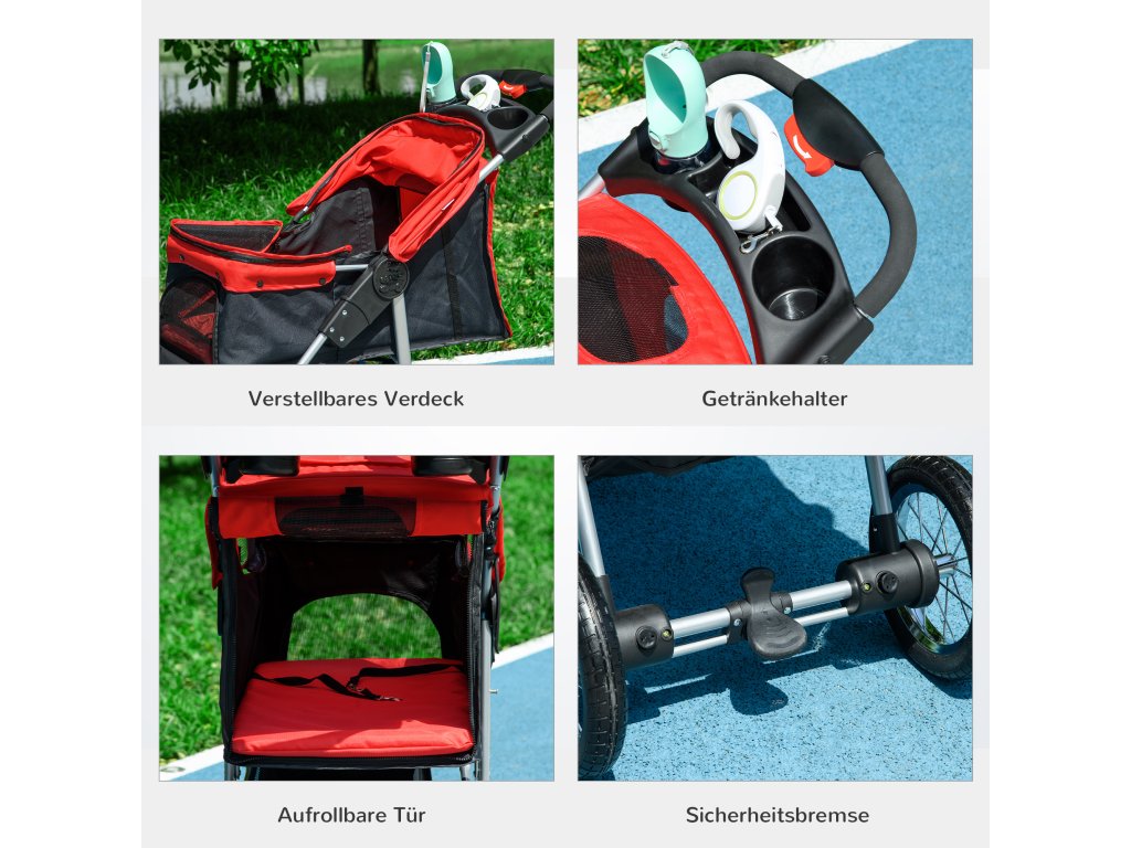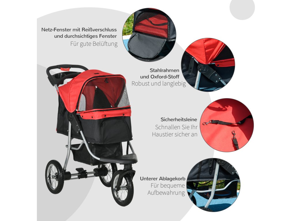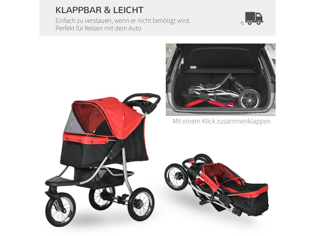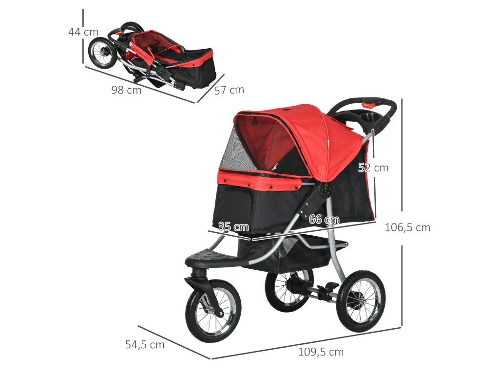 Kočárek pro psy do 10 Kg JOGGER se třemi koly skládací červená