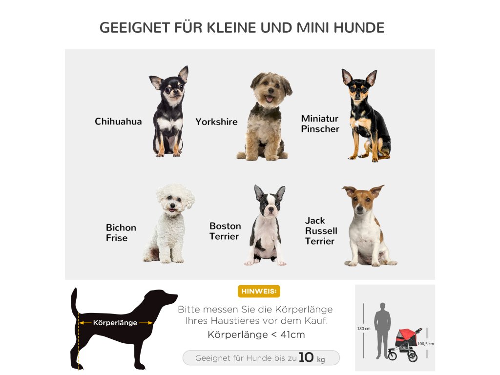 ✔ Vhodná pro malé psy a miniaturní psy s délkou menší než 41 cm a hmotností menší než 10 kg