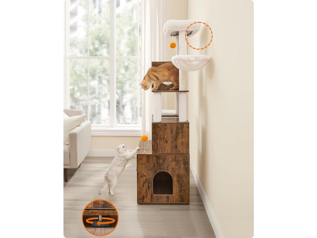 Kočičí domek 2 v 1 kombinuje škrabací strom a skříňku na kočičí toaletu, poskytující vašemu chlupatému příteli vlastní prostor a úsporu místa.