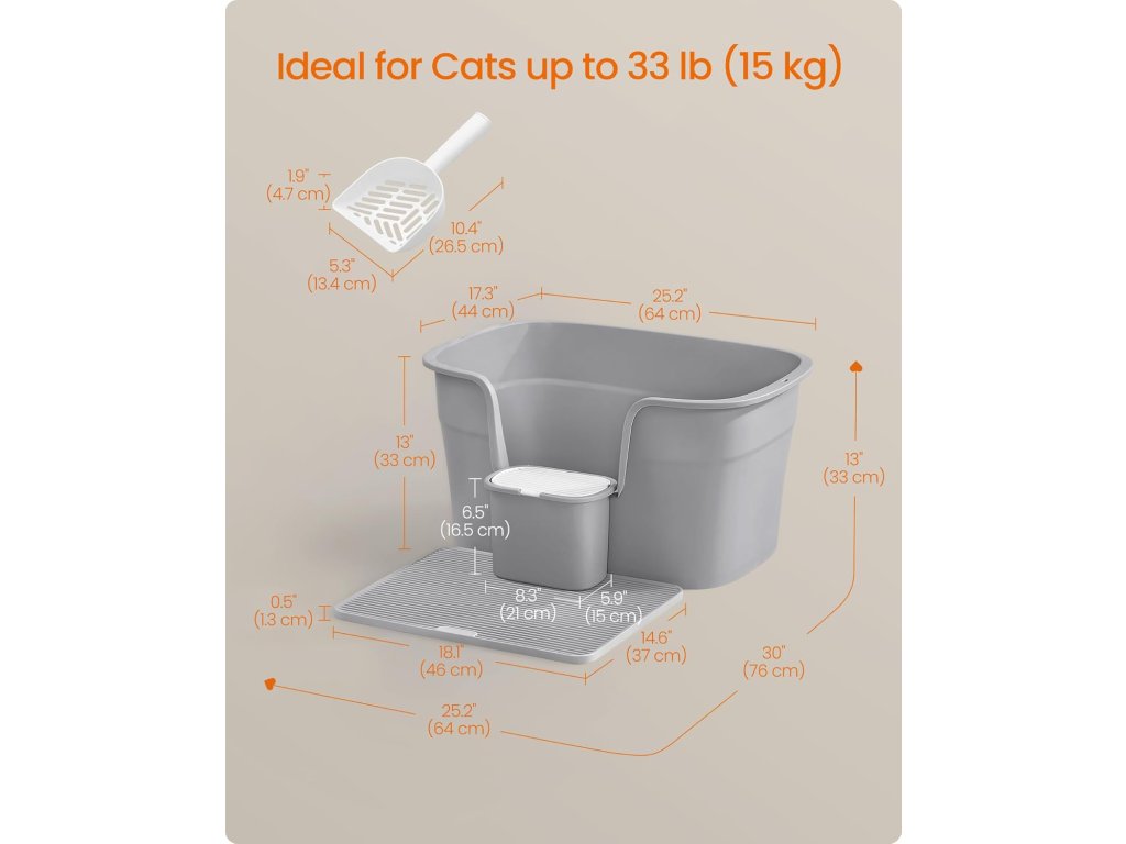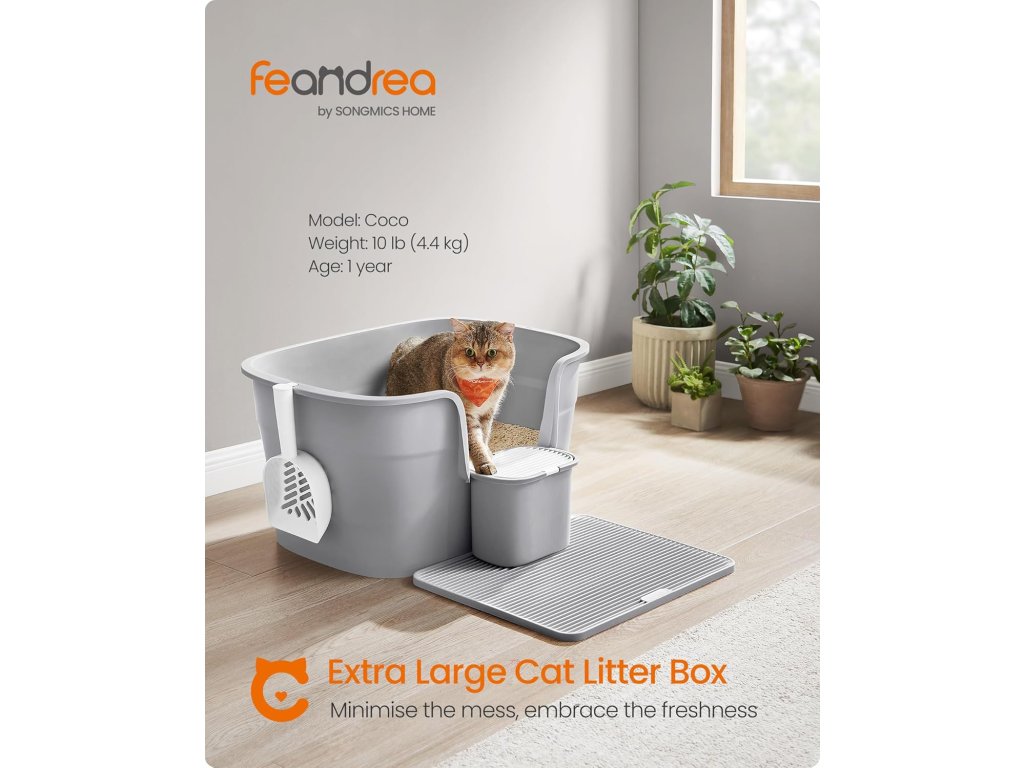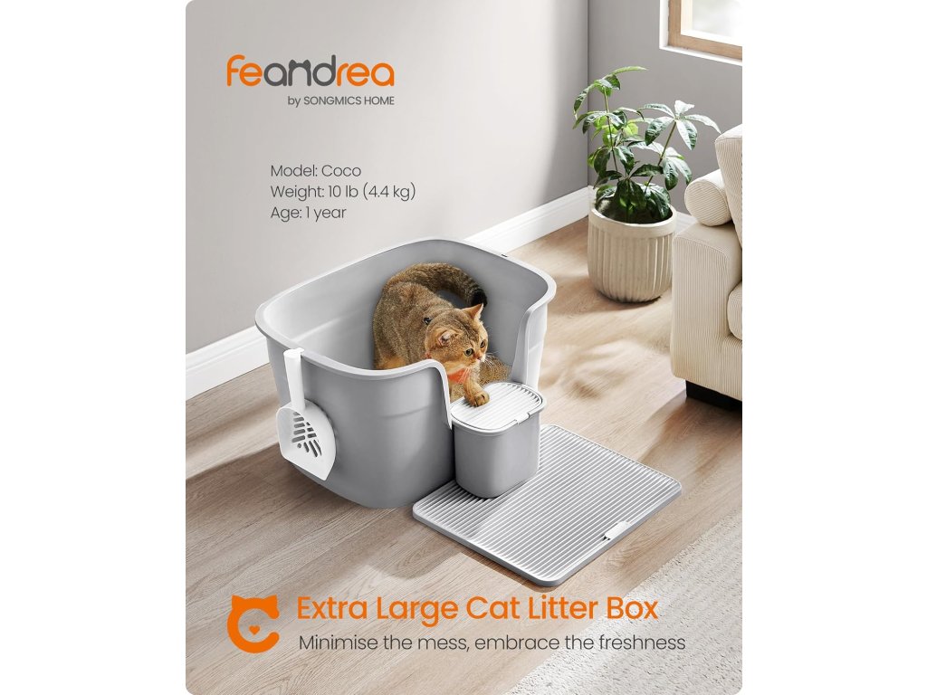 Radujte se, velcí kočičí milovníci! Tato extra velká toaleta o rozměrech 64 x 44 x 33 cm poskytuje kočičím přátelům dostatek prostoru, aby se mohli pohodlně otočit a hrabat. Je ideální pro kočky do 15 kg, včetně ragdollů a mainských mývalích koček.