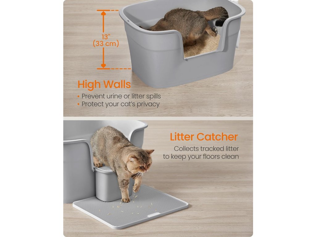Díky zvýšeným stěnám poskytuje tato toaleta vašemu kočičímu kamarádovi trochu soukromí a zároveň udržuje stelivo a moč úhledně uzavřené. Více soukromí, méně nepořádku, všichni jsou spokojení!